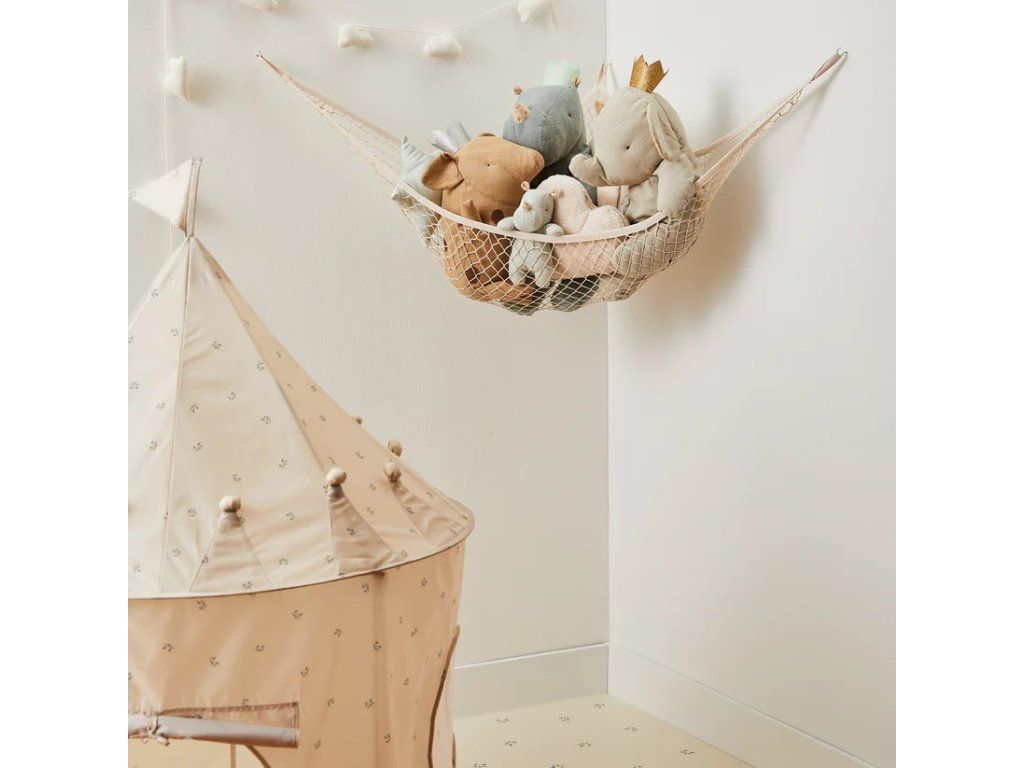 Hamaka na hračky je navržena tak, aby se vešla do jakéhokoli rohu dětského pokoje pojme velké množství hraček vynikající řešení pro udržení pořádku snadno se instaluje navržena tak, aby udržela velkou váhu pro uložení dalších hraček, oblečení a dokonce i sportovního vybavení materiál: 100% polyester rozměry: 178 x 117 x 117 cmDoplňkové parametry