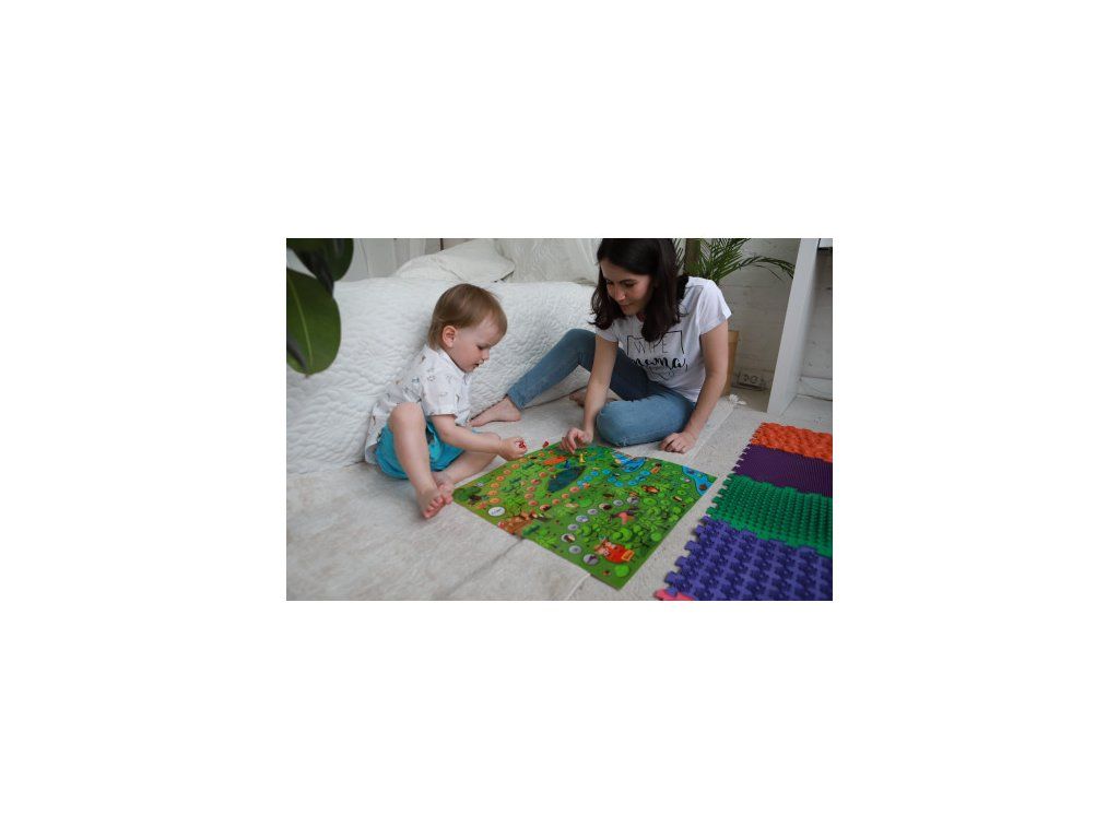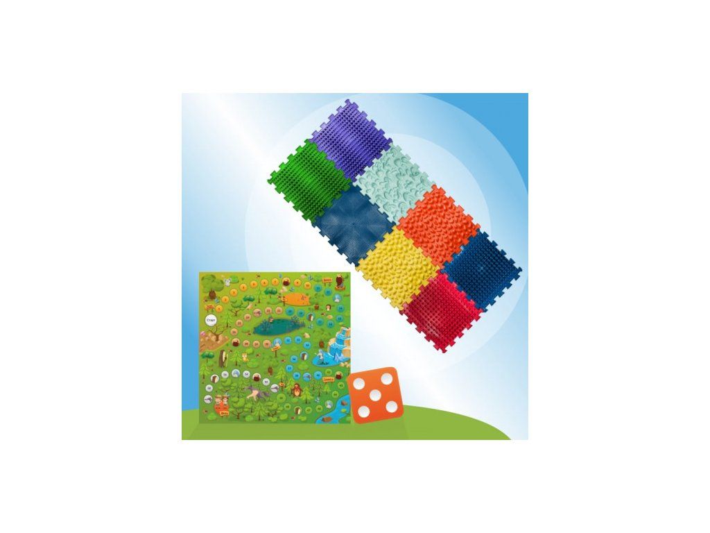Podložka se skládá z 8 puzzle dílů. Materiál: PVC (bezpečné, z nezávadného materiálu, hypoalergenní)Rozměr modulu: 26 x 26 cm Chůze po masážní podložce je velmi užitečná. Ne vždy to však děti dělají dobrovolně. Děti si však rády hrají. Díky hře Lesní dobrodružství je cvičení na masážní podložce opravdu zajímavé. Hru mohou hrát 1 až 4 děti. "Lesní dobrodružství" si zamilují děti i dospělí. Hra je vhodná pro jednoho nebo dva hráče nebo jako rodinná hra. Jak hrát? Hráč hodí kostkou a přesune žeton po hracím poli. V průběhu hry se plní úkoly z karet a pohádkových postav, které se během hry objevují na hracím poli. Každý úkol je zajímavým a užitečným cvičením na masážní podložce. Proč jsou masážní ortopeické koberečky potřeba: