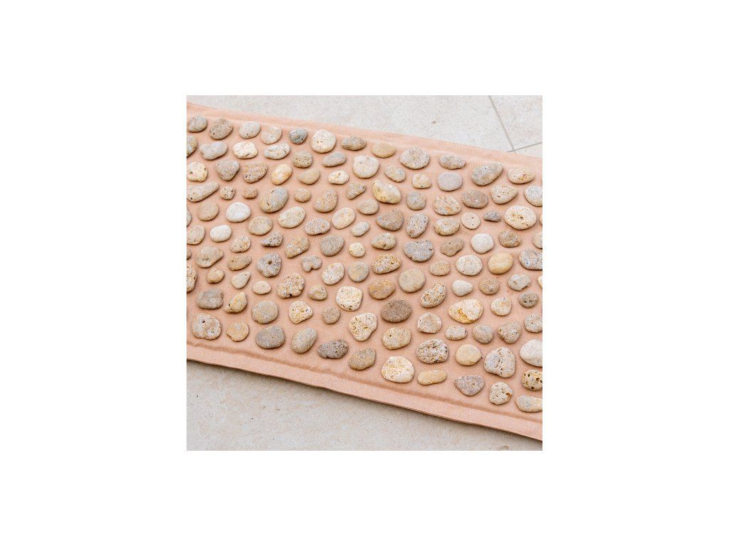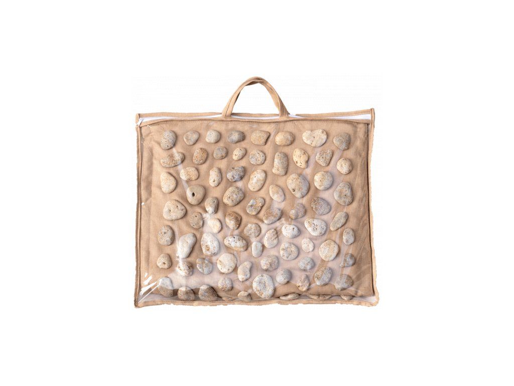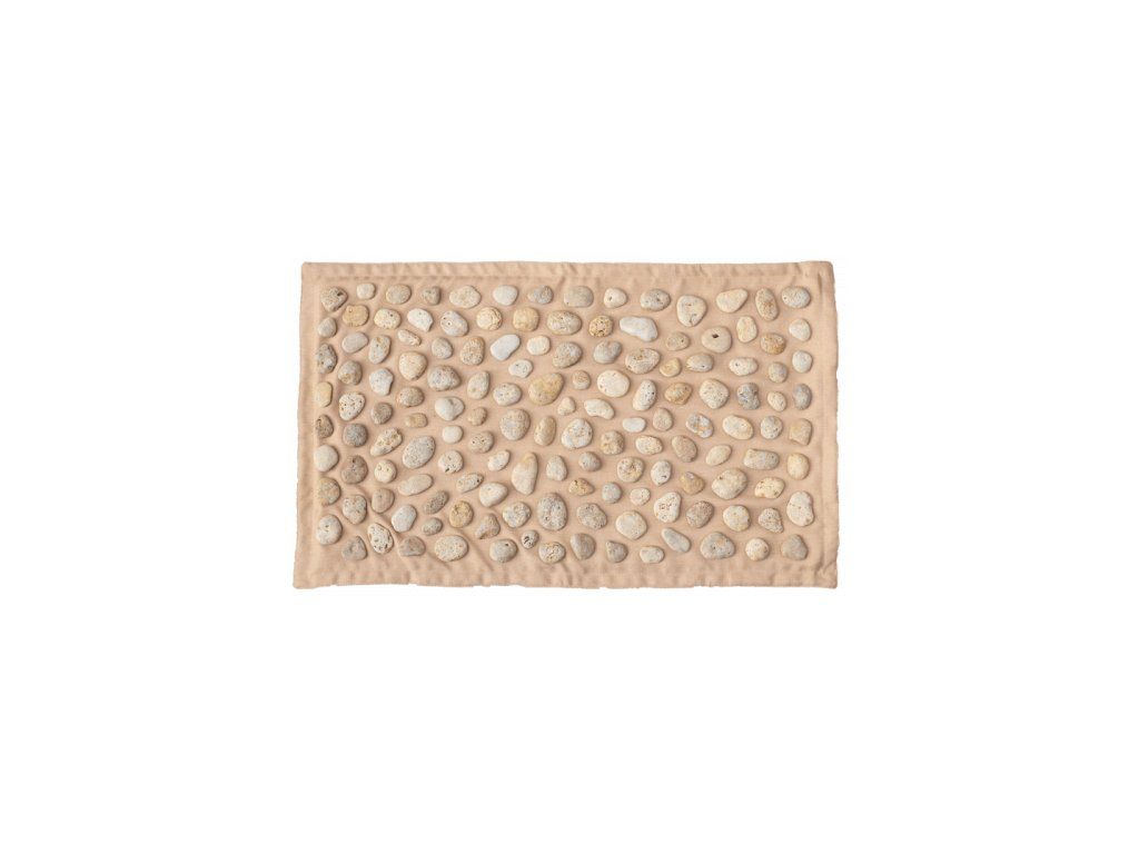 Masážní podložka na chodidla je vyrobena s použitím přírodních oblázků z Černého moře. Základem podložky je přírodní lněný textil, lepidlo je bez zápachu, není toxický, kamínky drží pevně.