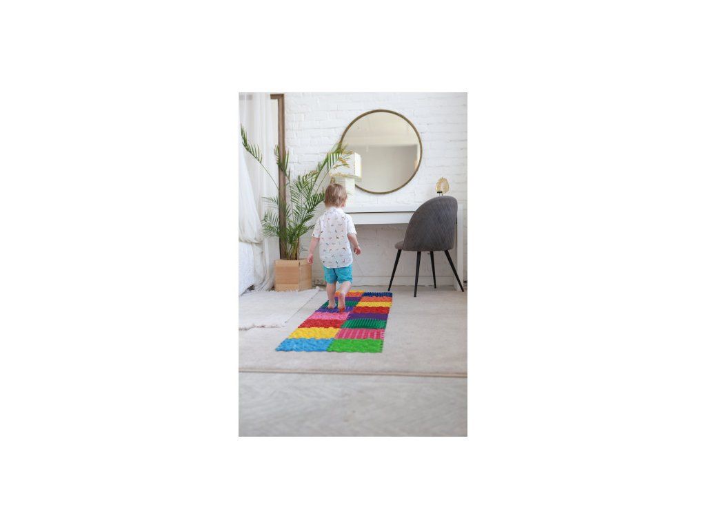 K čemu slouží ortopedické masážní podložky: k masáži, trénování a posílení chodidel k prevenci plochých chodidel a při obloukovité (varus) a klopené deformaci (valgus) k rozvoji jemné motoriky a kognitivních schopností dítěte k okolnímu světu koberečky snižují únavu při dlouhém zatížení, pomáhají odstraňovat otoky a pocit těžkých nohou.Připravili jsme souhrn doporučených cviků na masážní podložce Ortek. Dítě skládá puzzle, vy zapínáte video a dítě může cvičit! Je potřeba cvičit 3-5 krát týdně. Již po měsíci tréninků je možné vidět výsledky. Svaly budou silnější a chůze stabilnější.