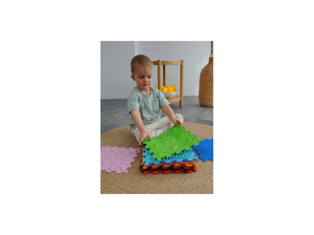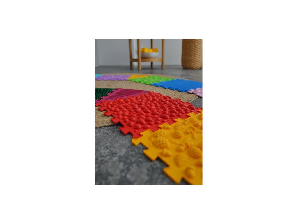 Všechny puzzle jsou vyrobeny ze stejného materiálu - bezpečného, hypoalergenního PVC bez škodlivých příměsí. Díky různým povrchům jsou však na dotek odlišné. Tráva, Mušle, Oblázky, Houby patří mezi měkčí puzzle. Věže, Ježci, Moské, Žaludy jsou středně tvrdé. Pyramida, Hroty, Lotos, Šišky patří k tvrdším puzzlům. Působení povrchů různé tvrdosti má nejlepší účinek pro masáž, trénink chodidel a smyslovou integraci.