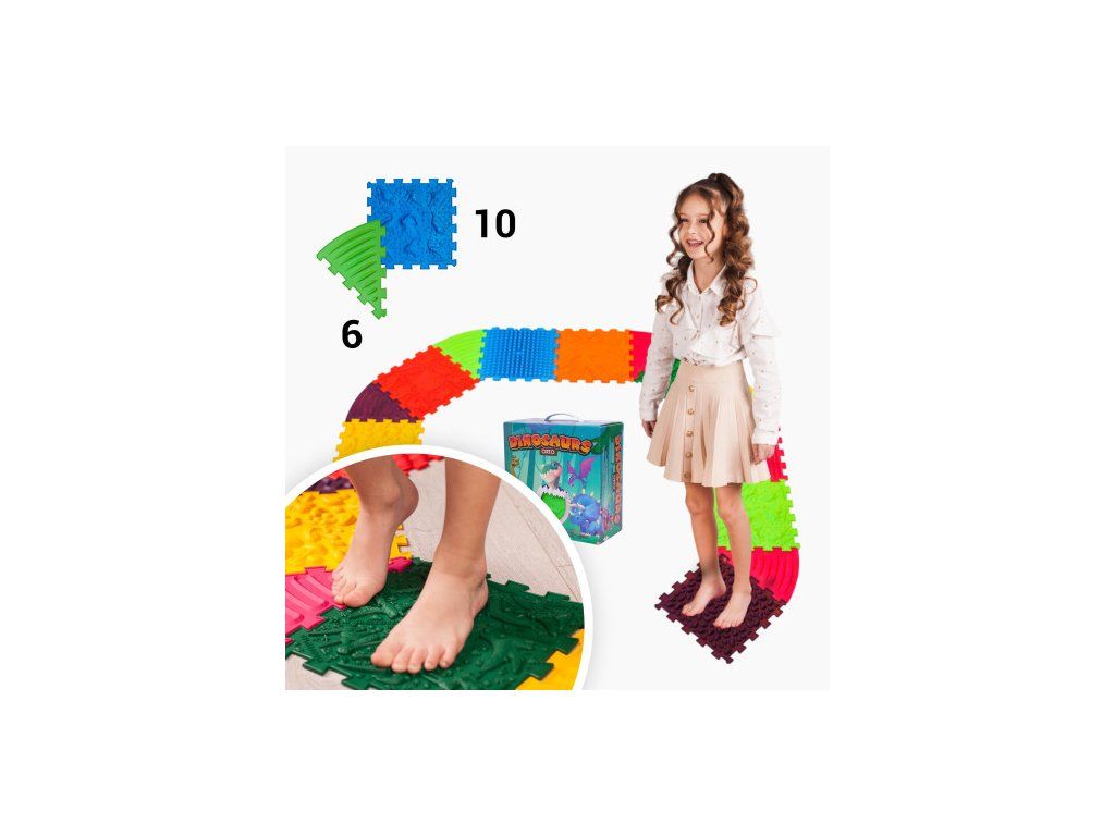 Masážní podložka Ortek Dinosauři Puzzle 10 prvků + 6 trojúhelníků