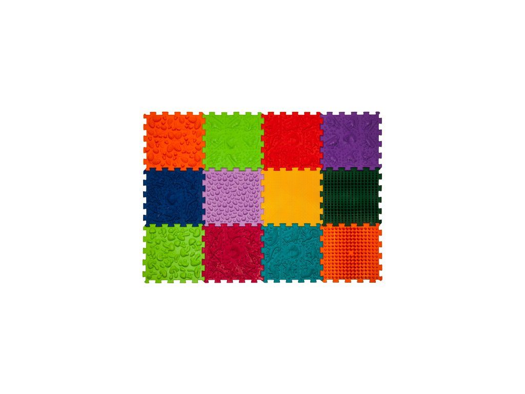 Masážní podložka se skládá z 12 puzzlí a je vyrobena z hygienického, hypoalergenního materiálu na bázi PVC.