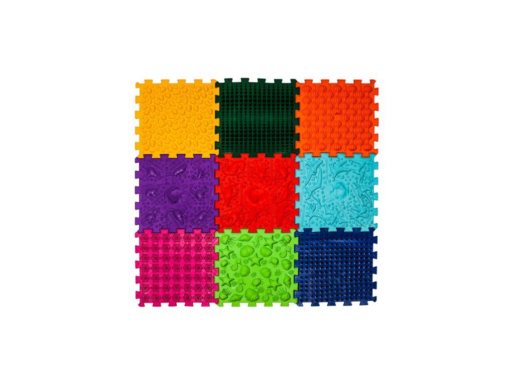 Všechny puzzle jsou vyrobeny ze stejného materiálu - bezpečného, hypoalergenního PVC bez škodlivých příměsí. Díky různým povrchům jsou však na dotek odlišné. Tráva, Mušle, Oblázky, Houby patří mezi měkčí puzzle. Věže, Ježci, Moské, Žaludy jsou středně tvrdé. Pyramida, Hroty, Lotos, Šišky patří k tvrdším puzzlům. Působení povrchů různé tvrdosti má nejlepší účinek pro masáž, trénink chodidel a smyslovou integraci.
