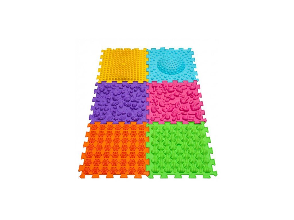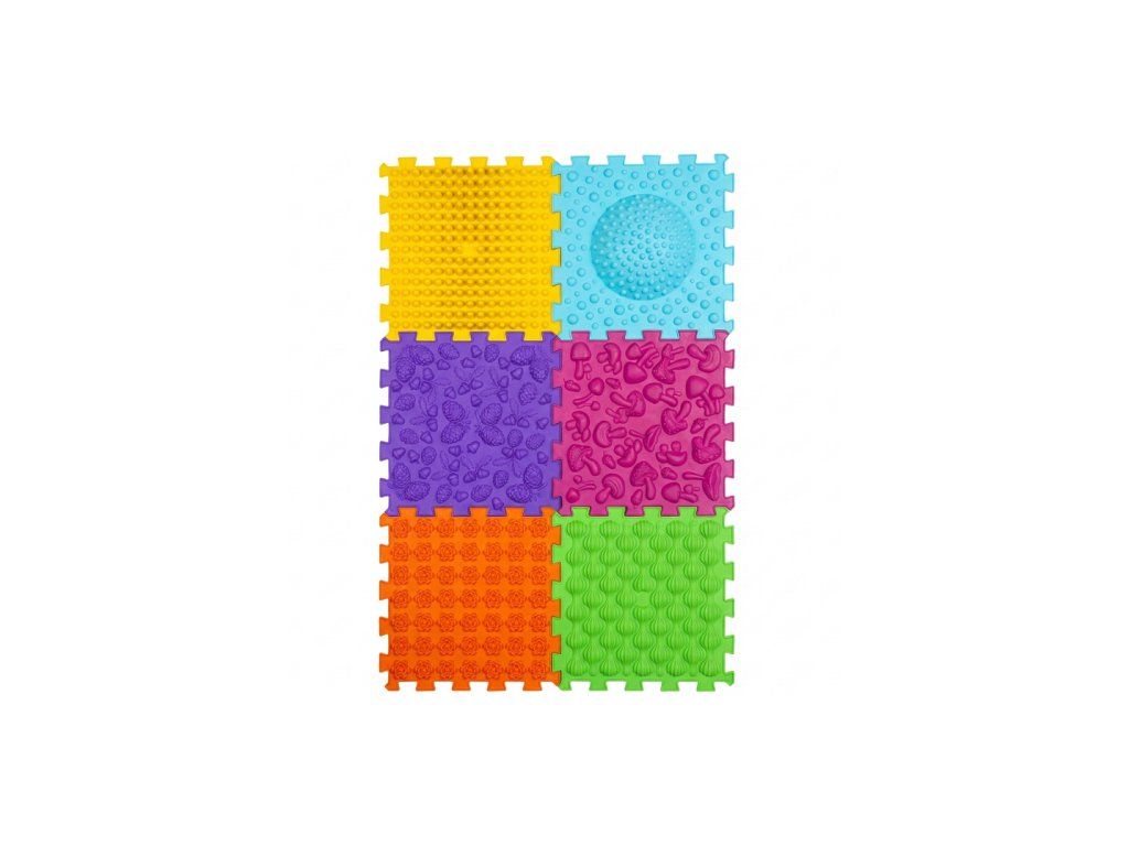 Co dokáže masážní podložka: podporuje správný vývoj dětských chodidel; zlepšuje svalový tonus a posiluje podélnou i příčnou klenbu; aktivně přispívá k lepšímu prokrvení; uvolňuje napětí v chodidlech díky stimulaci nervových zakončení. Použití: prevence plochých nohou, koňské nohy (vtočených nohou), valgózní deformity a dalších deformací; prevence křečových žil, artrózy a artritidy; úleva při únavě a pocitu těžkých nohou. Sada doporučených cviků: Chůze po podložce vpřed a vzad (30–40 sekund). Výchozí poloha – ve stoje, stoupání na špičky (7–9×). Ve stoje – přenášení váhy z paty na špičku (30–40 sekund). Chůze po podložce s překřížením nohou (30–40 sekund). Chůze po vnitřní straně chodidel (30–40 sekund). Chůze po vnější straně chodidel (30–40 sekund). Chůze po špičkách (30–60 sekund). Dřepy s oporou celé nohy, bez zvedání pat z podložky (7–9×). Stoj – udržení rovnováhy nejprve na jedné, poté na druhé noze (20–30 sekund). Skoky z jednoho dílu na druhý (7–9×). Skoky nejprve na jedné, poté na druhé noze (6–8×). Poloha v polosedu – chůze po podložce (20–30 sekund).Jde o kompletní cvičení na masážní podložce Ortek. Po rozložení puzzlí stačí spustit video a dítě může bezpečně cvičit podle doporučené sestavy. Cvičit se doporučuje třikrát až pětkrát týdně. Už po měsíci si můžete všimnout prvních výsledků cvičení u dítěte, jeho svaly se zpevní a chůze bude jistější. Všechny puzzle díly jsou vyrobeny ze stejného materiálu – bezpečného, hypoalergenního PVC bez škodlivých příměsí. Díky rozdílným texturám však působí každý díl trochu jinak. Tráva, Mušle, Oblázky a Houby patří mezi měkčí puzzle. Věže, Ježci, Mořští živočichové a Žaludy mají střední tvrdost. Pyramida, Bodlinky, Lotos a Šišky jsou naopak pevnější povrchy. Kombinace různě tvrdých modulů vytváří nejlepší podmínky pro masáž chodidel, trénink klenby i rozvoj senzorické integrace.