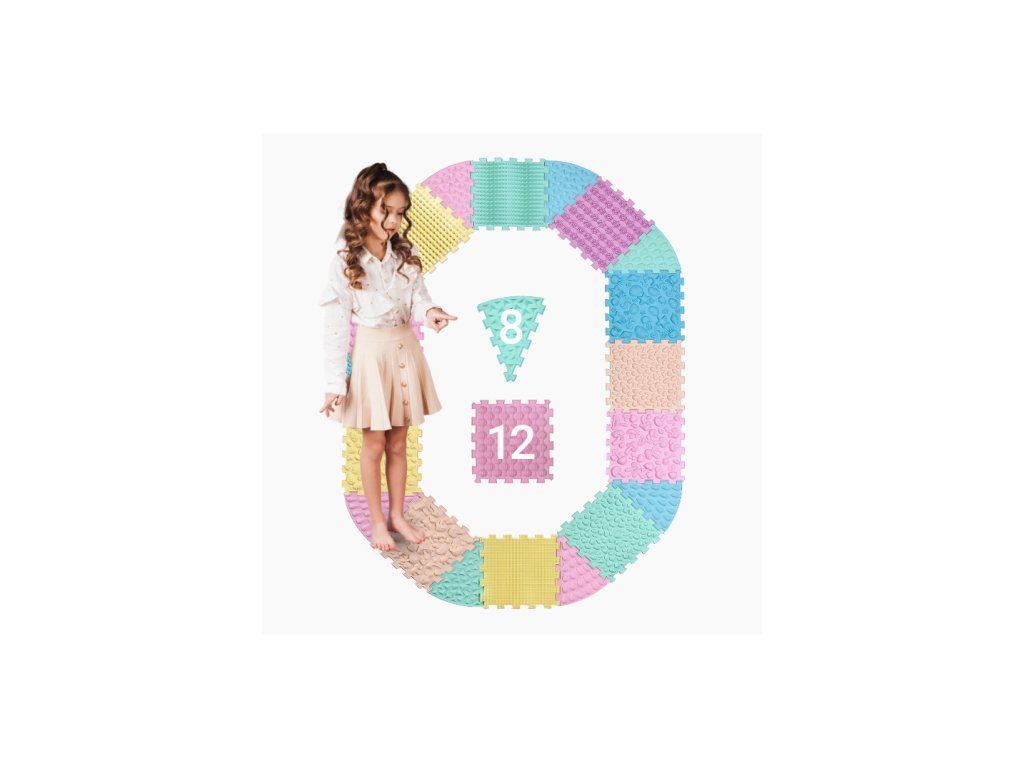Co dokáže masážní podložka: podporuje zdravý vývoj dětských nohou; zlepšuje svalový tonus, posiluje podélnou i příčnou klenbu nohy; příznivě ovlivňuje krevní oběh; ulevuje od napětí v nohách působením na nervová zakončení.Sady s trojúhelníkovými otočnými díly umožňují vytvářet vlnité cestičky, kruhy, vzory i křížení. Díky tomu si můžete naplánovat trasy okolo nábytku, rohů místnosti, ušetřit místo a především podpořit dětskou fantazii a zájem o pohyb na podložkách.