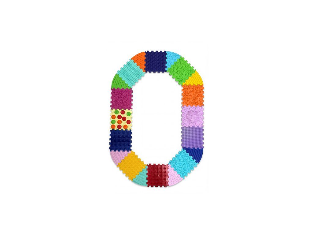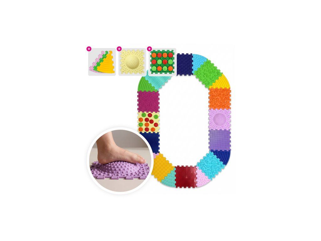 Jedná se o rozšířenou sadu s maximálním přínosem, která kombinuje masážní puzzle, otočné trojúhelníkové díly, senzorické díly Vzory a balanční puzzle bosu.. Masážní podložka se skládá z 12 čtvercových puzzlí (z nichž jedna obsahuje bosu), 8 trojúhelníkových puzzlí a 12 dílů Vzory. Rozměr čtvercového modulu: 26 × 26 cm, trojúhelníkového: 23 × 19 cm, průměr dílu Vzor: 5 cm. Materiál: PVC (bezpečný, bez příměsí)