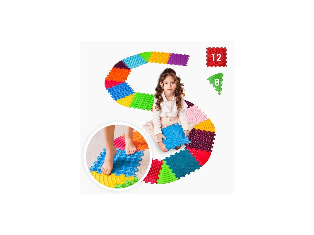 podporuje správný vývoj dětských nohou; zlepšuje svalový tonus posilováním podélné a příčné klenby chodidla; účinně zlepšuje krevní oběh; uvolňuje napětí v chodidlech působením na nervová zakončení.Sady s trojúhelníkovými rohovými puzzly umožňují vytvářet vlnité dráhy, kruhy a vzory z běžných čtvercových skládaček. Tímto způsobem můžete vytvářet dráhy kolem kusů nábytku, rohů, šetřit místo v místnosti a hlavně - rozvíjet fantazii a zájem dětí o činnosti na podložkách.