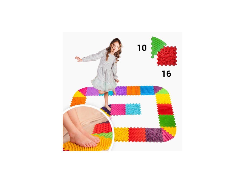 podporuje správný vývoj dětských nohou; zlepšuje svalový tonus posilováním podélné a příčné klenby chodidla; účinně zlepšuje krevní oběh; uvolňuje napětí v chodidlech působením na nervová zakončení.Sady s trojúhelníkovými rohovými puzzly umožňují vytvářet vlnité dráhy, kruhy a vzory z běžných čtvercových skládaček. Tímto způsobem můžete vytvářet dráhy kolem kusů nábytku, rohů, šetřit místo v místnosti a hlavně - rozvíjet fantazii a zájem dětí o činnosti na podložkách.