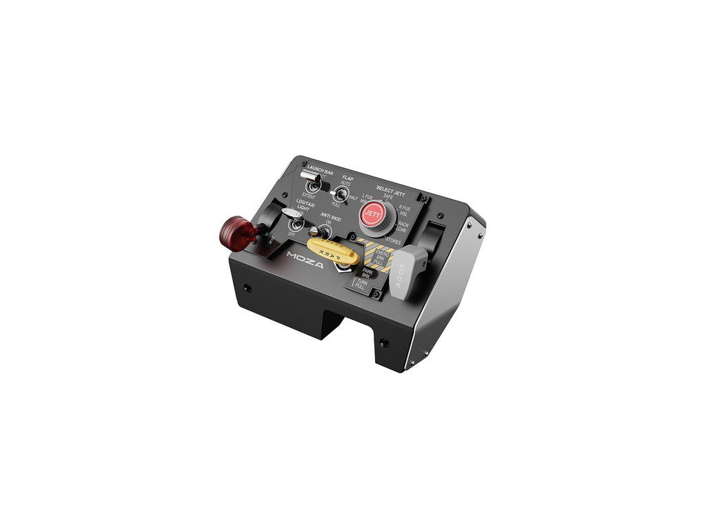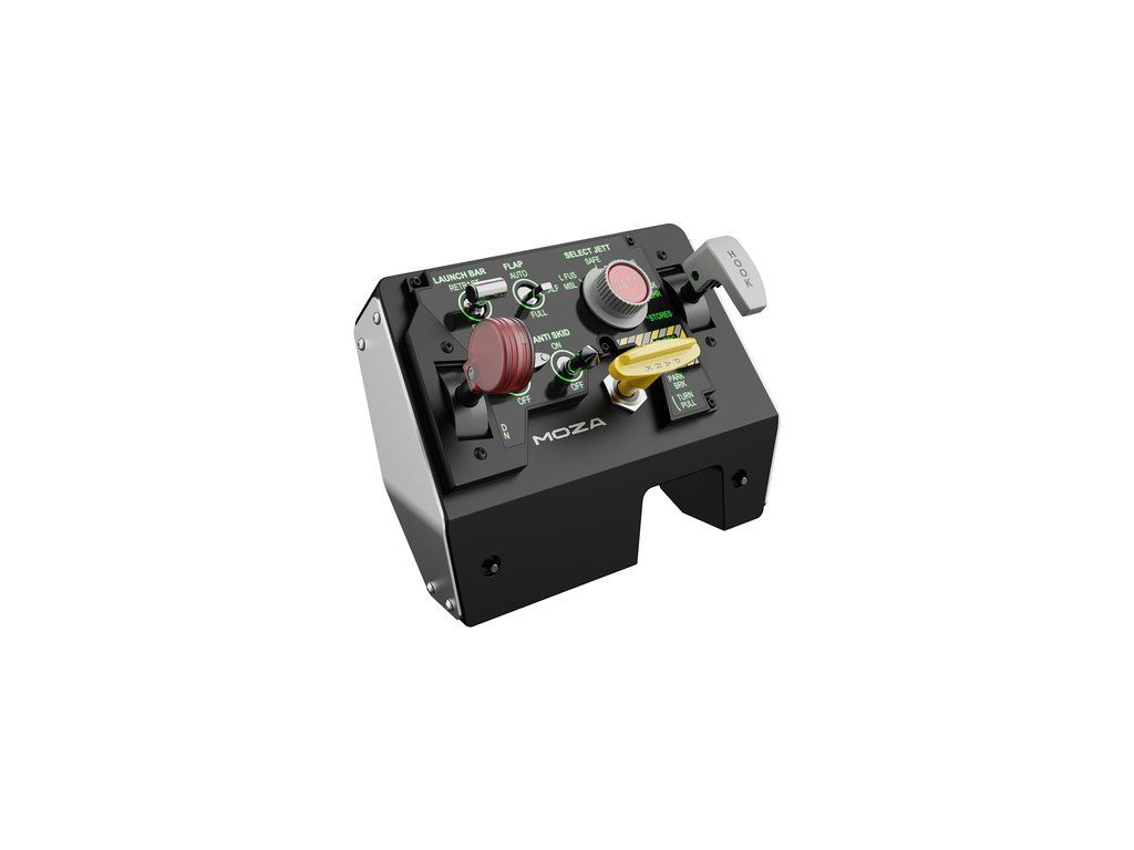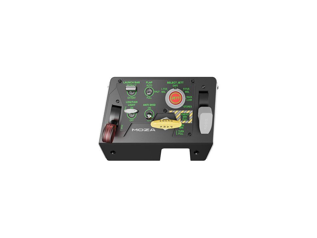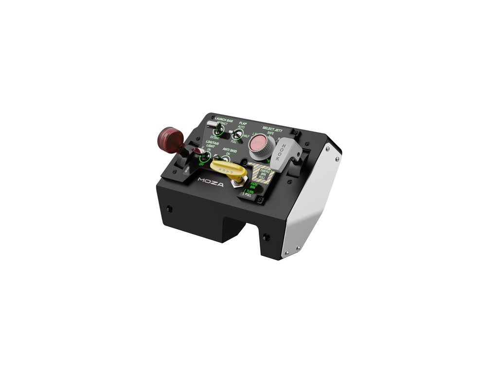 MOZA Racing MTLP AS009 je profesionální vzletový a přistávací panel pro fanoušky leteckých simulátorů, inspirovaný kokpitem stíhačky F/A-18. Nabízí realistické ovládání s páčkou parkovací brzdy, až 25 programovatelných přepínačů a dynamické podsvícení reagující na herní data. Vysoce výkonné Hallovy senzory a hliníková konstrukce zaručují přesnost a odolnost, zatímco modulární kompatibilita s dalšími zařízeními MOZA umožňuje vytvořit kompletní ovládací sadu pro simulaci vzletu, boje a přistání.