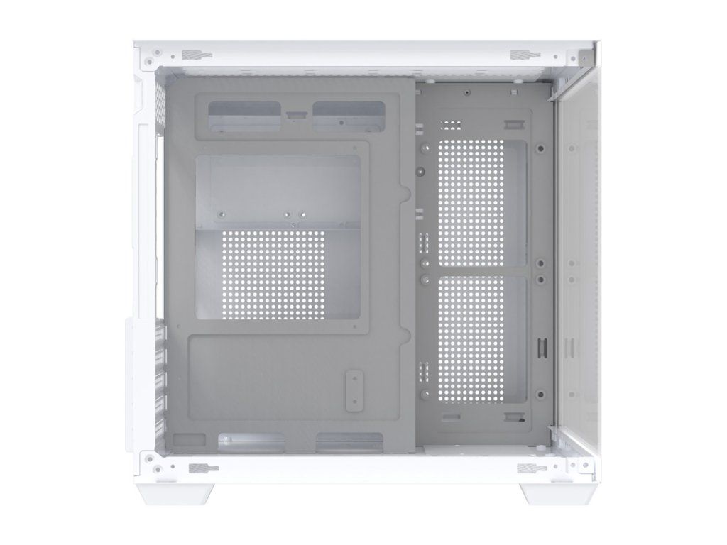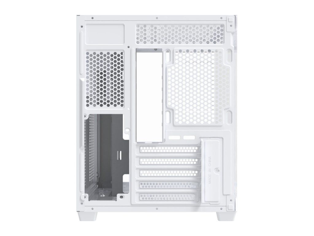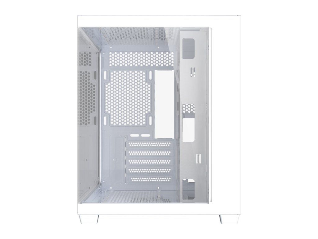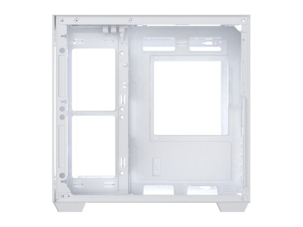 Skříň je vybavena skleněnými panely, které poskytují 270° panoramatický výhled do vnitřku. Design bez A-sloupku umožňuje jasný výhled na všechny komponenty zepředu i z boku. Toto řešení funguje obzvláště dobře s RGB osvětlovacími sadami, které zdůrazňují estetiku celé konfigurace. Realizujte své nápady a sestavte počítač, který vynikne z davu!