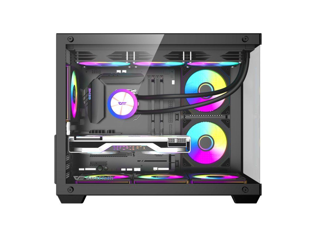 DarkFlash B275 PRO je funkční počítačová skříň, která na první pohled upoutá pozornost svým vnitřním prostorem. Bezrohý design poskytuje plný 270° výhled na komponenty a šest ventilátorů, které jsou součástí sady, zajišťuje standardně připravený a efektivní chladicí systém. Při zachování kompaktních rozměrů (354 x 275 x 425 mm) nabízí tento model prostor pro grafické karty o délce až 410 mm, chlazení CPU o výšce až 160 mm a dva SSD nebo jeden HDD. Můžete si tak snadno vytvořit přesně takovou konfiguraci, jakou chcete!