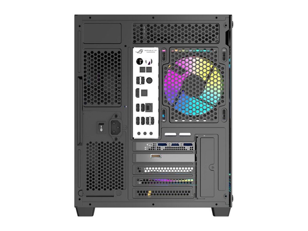 Na horním panelu skříně najdete port USB-A 3.0, dva porty USB-A 2.0 a konektor HD audio. Celek doplňují tlačítka napájení a reset. To vše poskytuje pohodlný přístup k nejdůležitějším funkcím počítače – můžete volně připojovat periferní zařízení, přenášet soubory, používat sluchátka, nabíjet zařízení a mnoho dalšího.