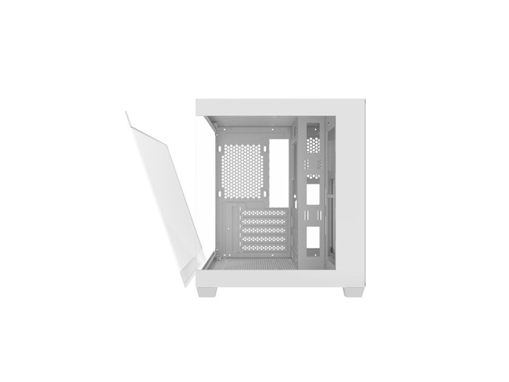 Počítačová skříň Darkflash C275P je volbou pro ty, kteří ocení kombinaci moderního designu a praktických řešení. Díky svým kompaktním rozměrům 333 x 275 x 323 mm je ideální jak do kanceláře, tak na domácí pracovní stanici hráče nebo tvůrce. Boční panel z tvrzeného skla je vybaven rychloupínacím mechanismem, díky němuž je přístup do vnitřku skříně rychlý a pohodlný. Absence nosného sloupku a panoramatické prosklení v úhlu 270° umožňují odhalit všechny komponenty a dodávají celku moderní, odlehčený vzhled.