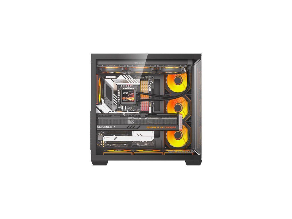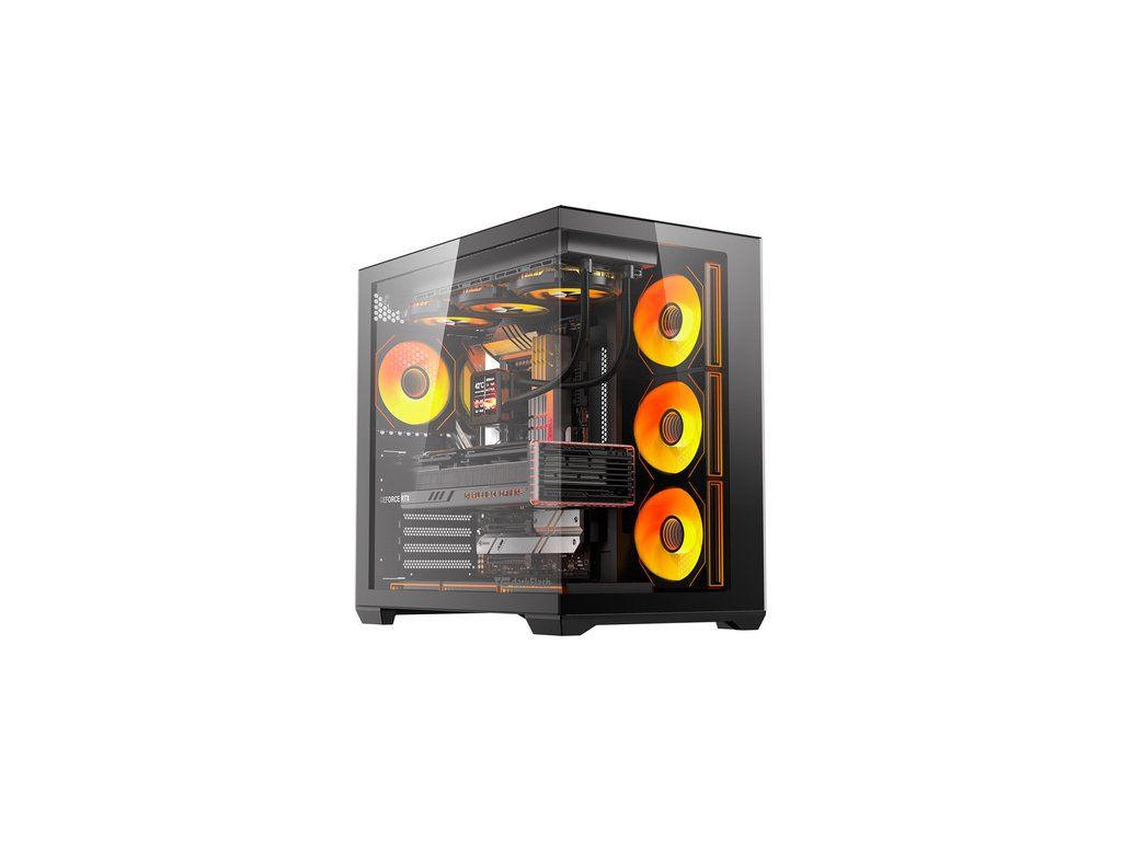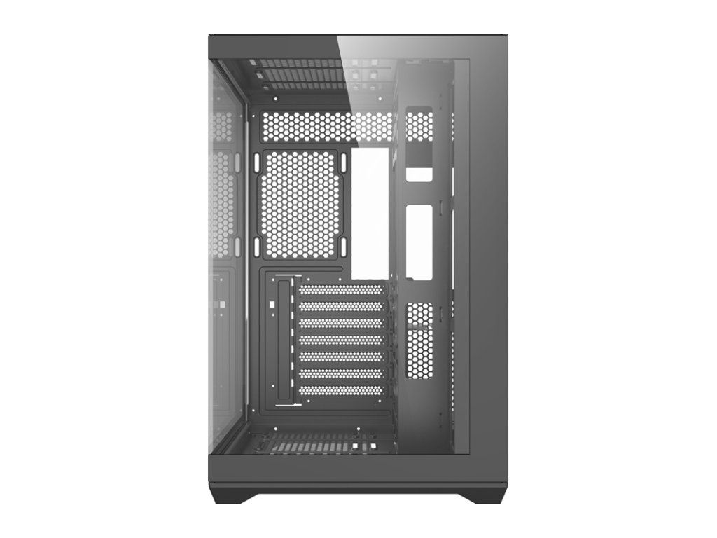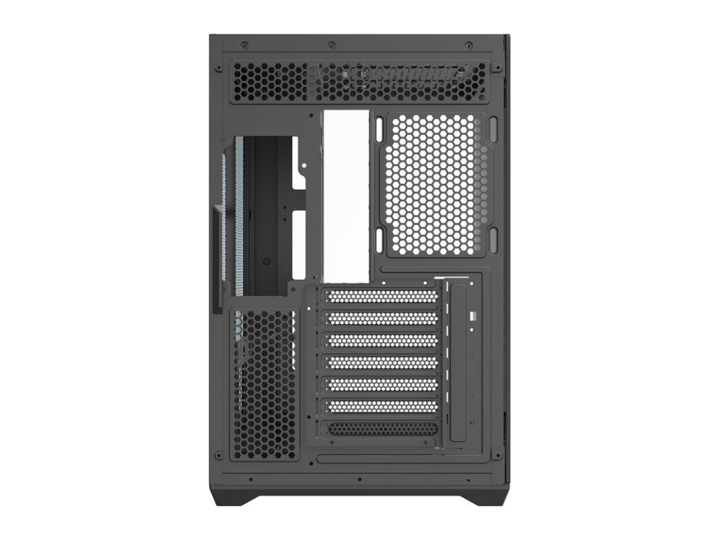 Model C280 využívá 270° panoramatický design bez vertikálního rohového profilu, takže vnitřek skříně zůstává plně viditelný z obou stran. Skleněné boční panely vám umožňují předvést například vodní chlazení s obrazovkou nebo ventilátory s RGB podsvícením. Díky tomuto řešení je skříň ideální pro prezentační a herní sestavy. Vytvořte jedinečnou konfiguraci a zdůrazněte charakter své pracovní stanice!