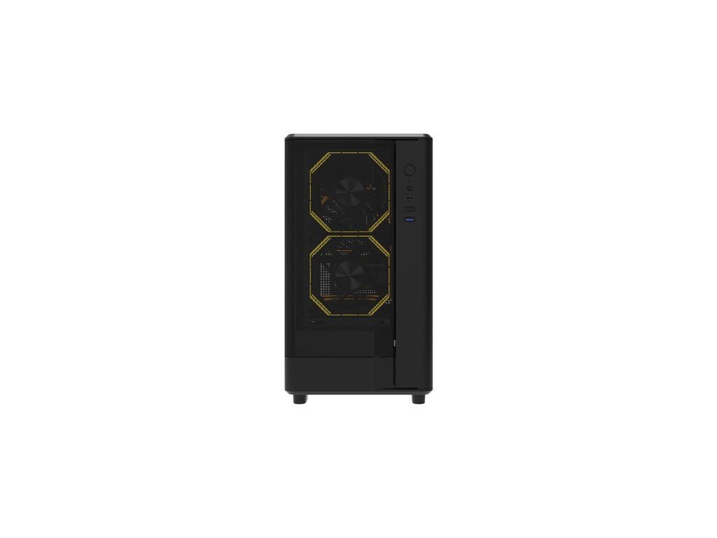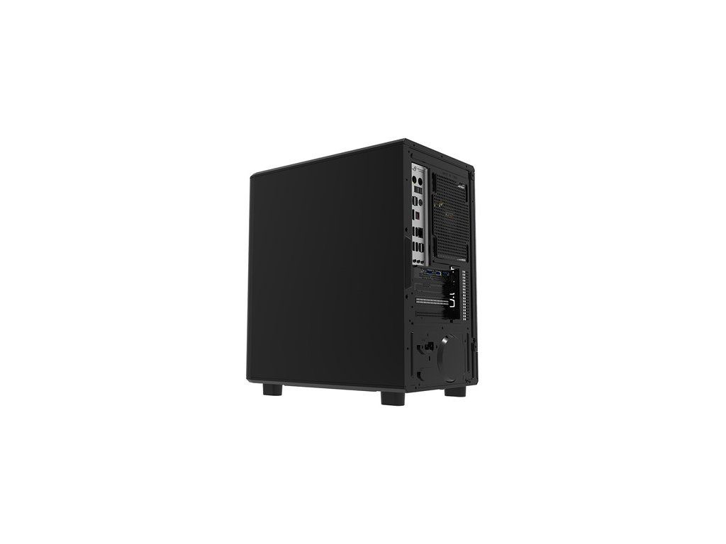 Zadní část skříně je vybavena tvarovaným prostorem a průchozími otvory pro přehledné vedení kabelů. Toto uspořádání usnadňuje instalaci komponent a zlepšuje proudění vzduchu v hlavním prostoru. Na předním panelu se nachází port USB 3.0, 2 porty USB 2.0, jeden port HD Audio a tlačítko napájení. Díky tomu můžete využívat rychlý přístup k základním funkcím, aniž byste museli sahat do zadní části skříně.