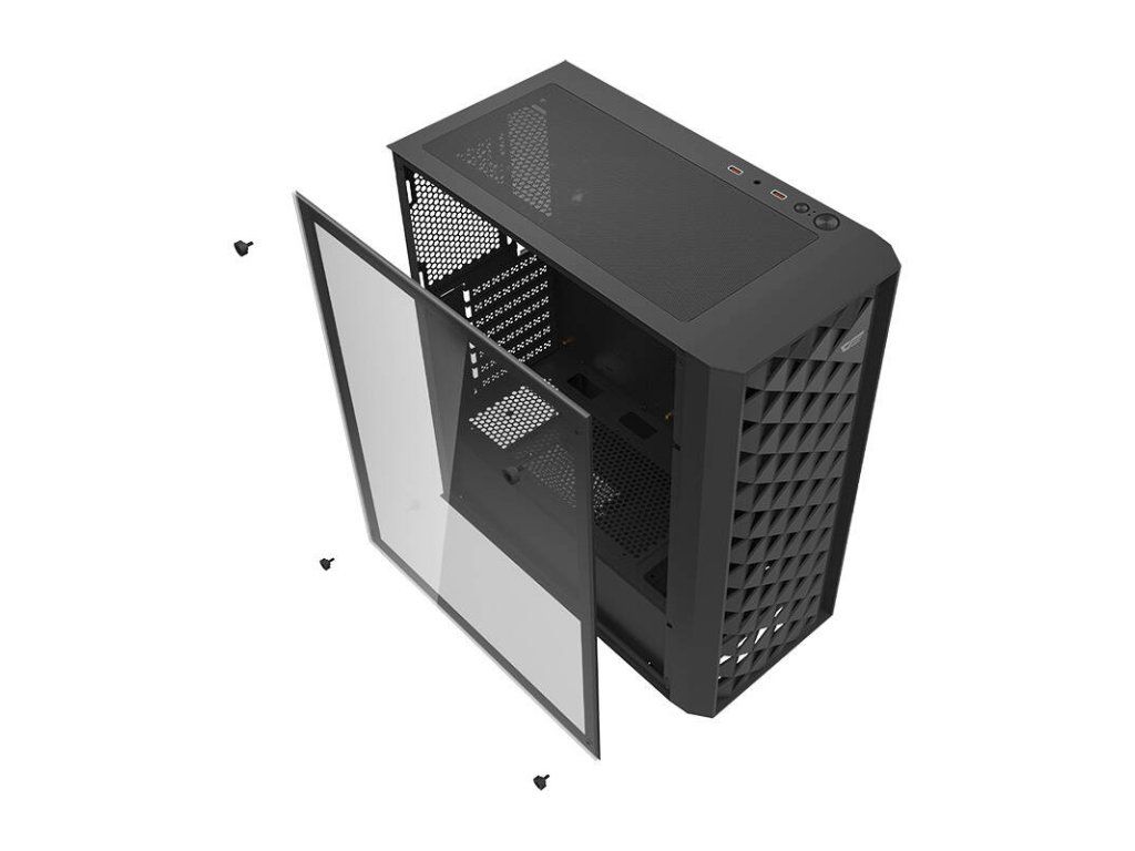 Skříň DK351 zaujme nejen svou funkčností, ale také moderním designem. Její boční panel byl vyroben z kvalitního tvrzeného skla, takže můžete získat zajímavé vizuální efekty, například při použití ventilátorů RGB. Navíc ji můžete v případě potřeby snadno rozebrat a vyměnit součástky nebo vyčistit hardware. Přední panel skříně zaujme také originálním průmyslovým designem.