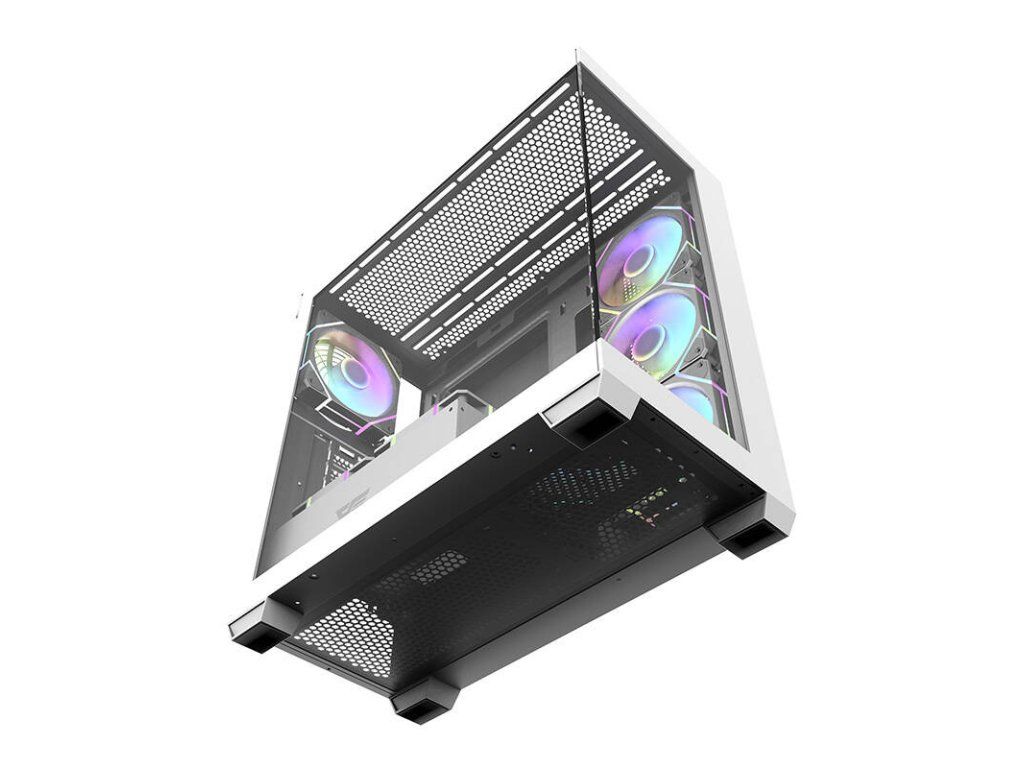 Darkflash DS900 je moderní řešení pro náročné uživatele, kteří ocení estetiku i funkčnost. Výrazné bílé provedení s panoramatickým designem bez A-sloupku, vybavené dvojitými plně průhlednými skleněnými stěnami, nejenže vypadá nápadně, ale také poskytuje vynikající viditelnost komponent. Skříň je navržena tak, aby poskytovala optimální chlazení, výkon a všestrannost a zároveň nabízela snadné úpravy a rozšíření počítačových systémů. V sestavě najdete 7 ventilátorů ARGB 120 mm.