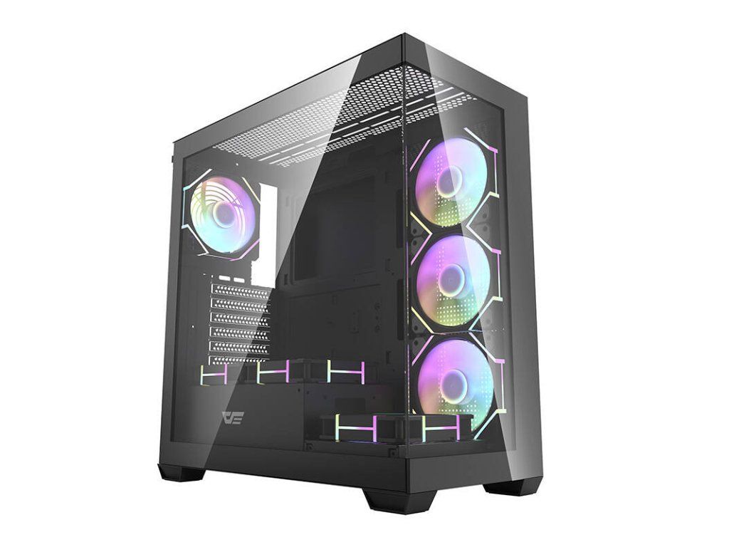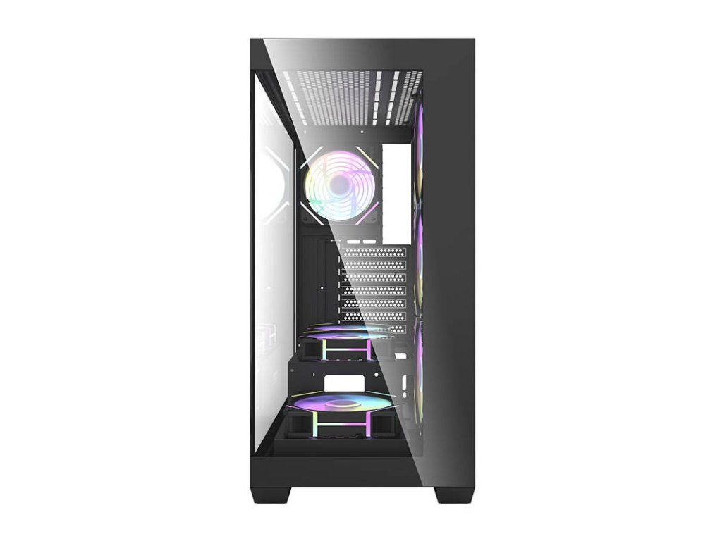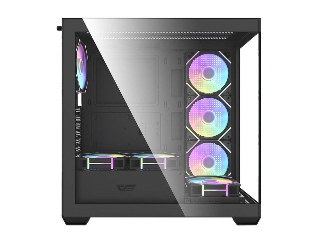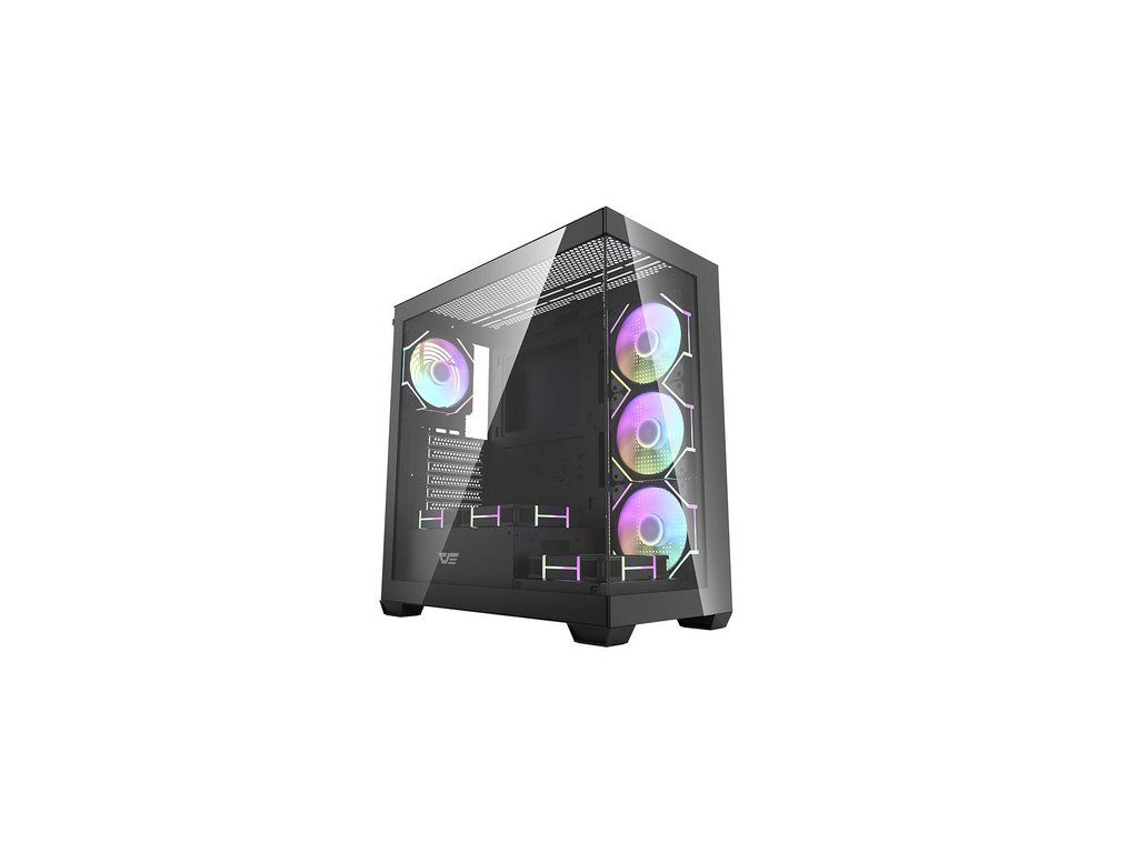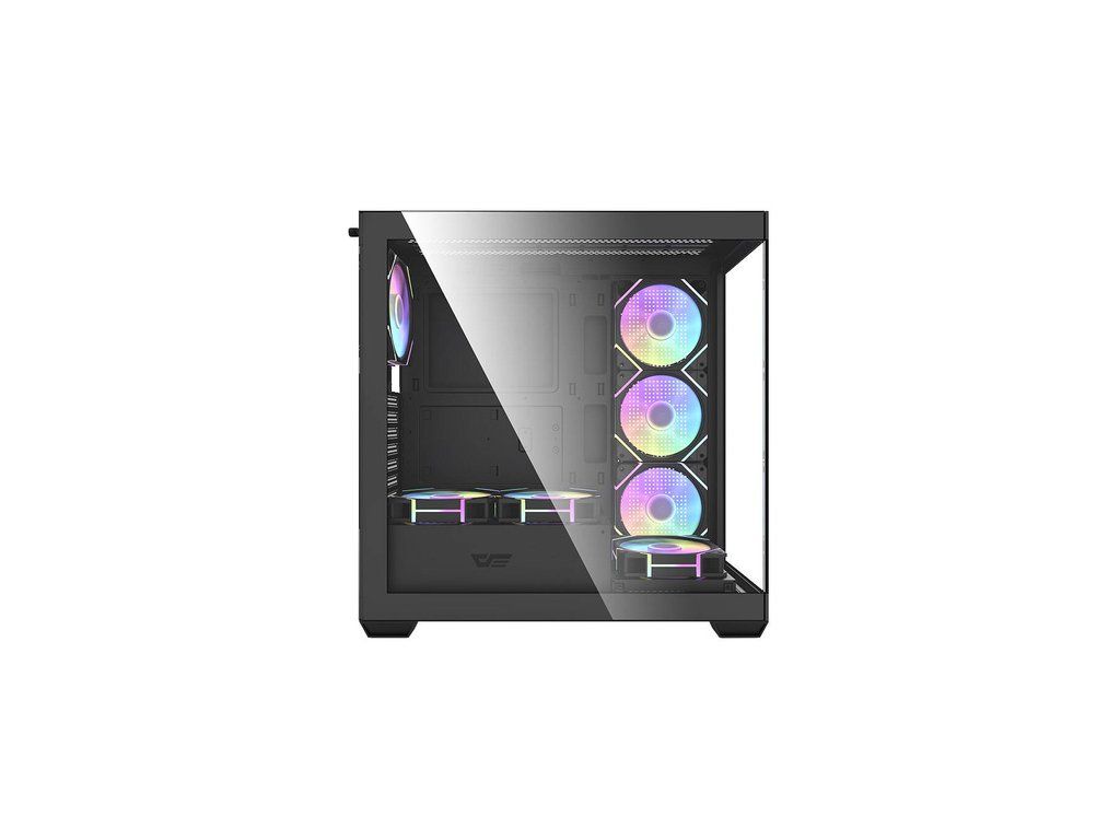 Darkflash DS900 je moderní řešení pro náročné uživatele, kteří si cení estetiky i funkčnosti. Výrazný černý design s panoramatickým provedením bez A-sloupku, vybavený dvojitými plně průhlednými skleněnými stěnami, nejenže vypadá nápaditě, ale také poskytuje vynikající viditelnost komponent. Skříň je navržena tak, aby poskytovala optimální chlazení, výkon a všestrannost a zároveň nabízela snadné úpravy a rozšíření počítačových systémů. V sestavě najdete 7 ventilátorů ARGB 120 mm.