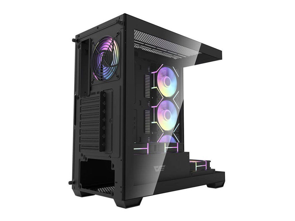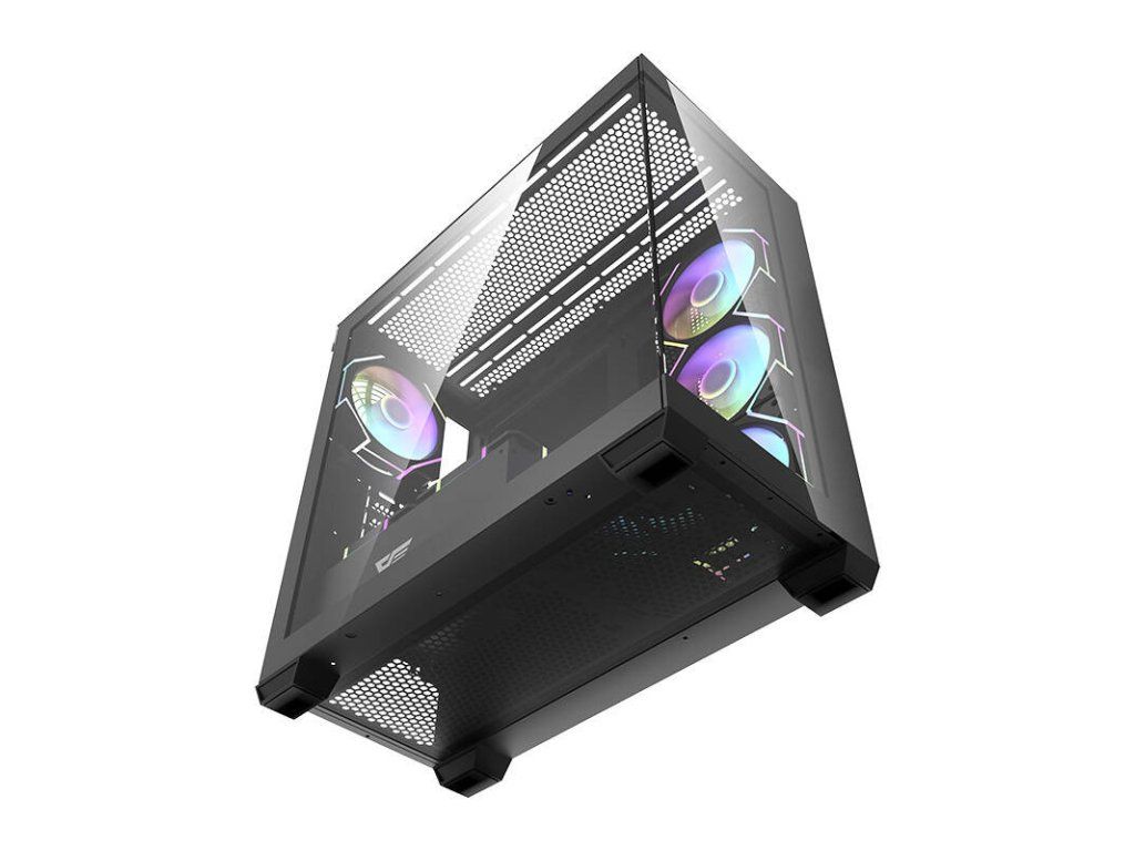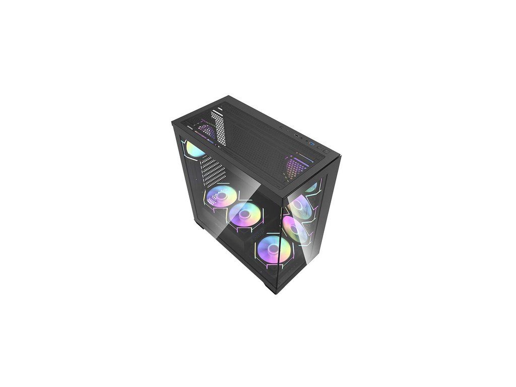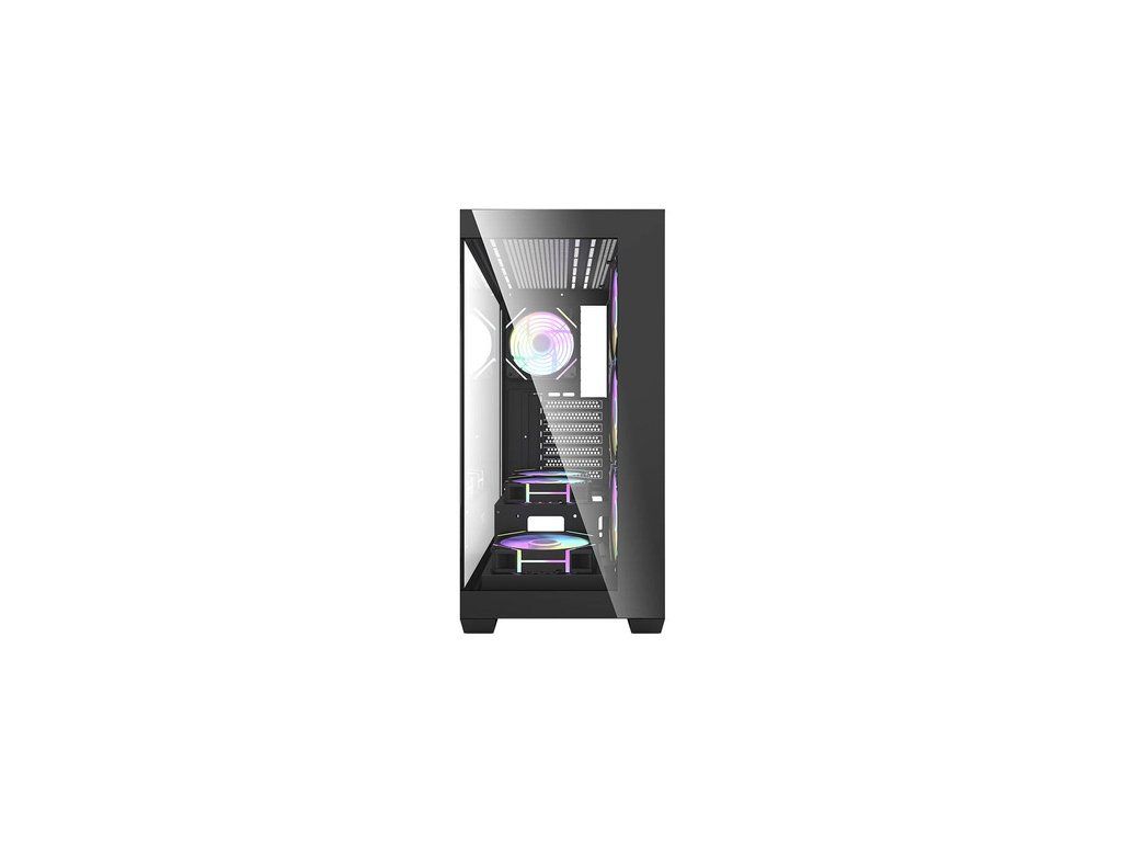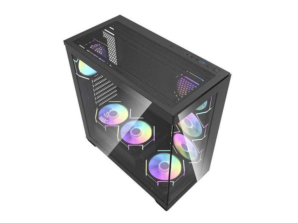 Darkflash DS900 je moderní řešení pro náročné uživatele, kteří si cení estetiky i funkčnosti. Výrazný černý design s panoramatickým provedením bez A-sloupku, vybavený dvojitými plně průhlednými skleněnými stěnami, nejenže vypadá nápaditě, ale také poskytuje vynikající viditelnost komponent. Skříň je navržena tak, aby poskytovala optimální chlazení, výkon a všestrannost a zároveň nabízela snadné úpravy a rozšíření počítačových systémů. V sestavě najdete 7 ventilátorů ARGB 120 mm.