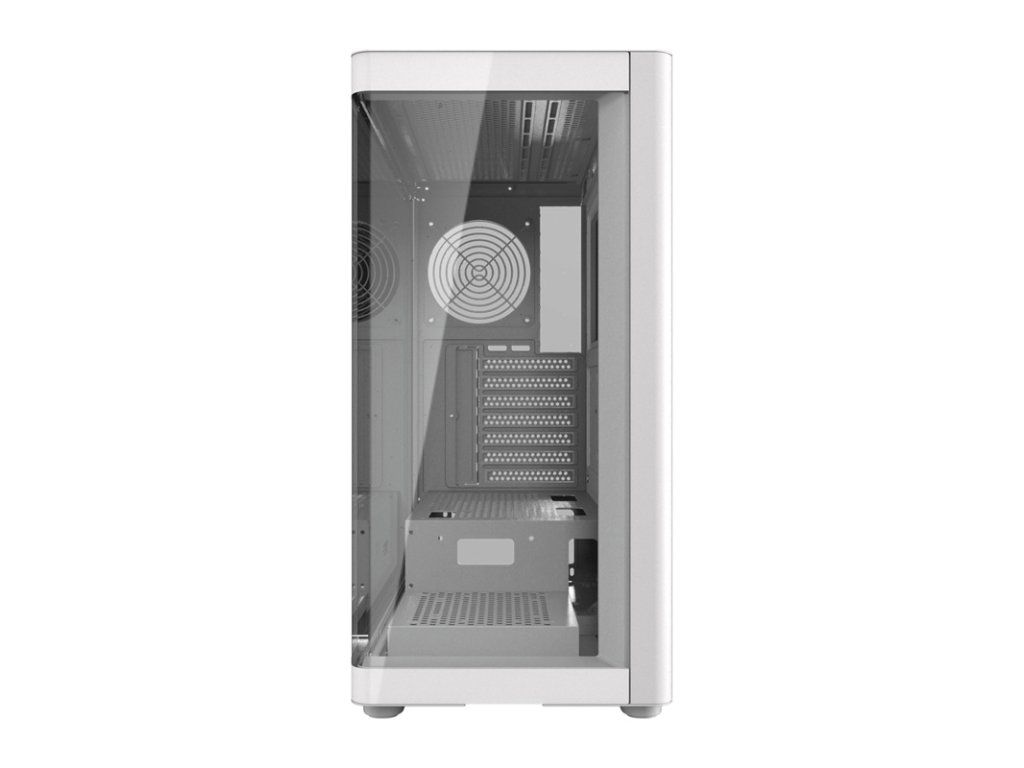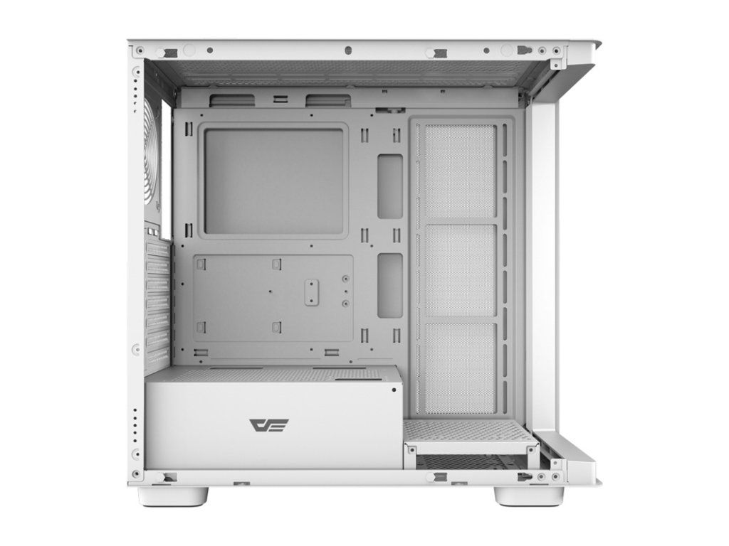 DarkFlash DS900G je skříň typu mid-tower, která nabízí rozsáhlé funkce pro náročné uživatele. Podporuje základní desky ATX, Micro-ATX a ITX a její vnitřní prostor umožňuje instalaci grafických karet o délce až 425 mm a chladičů CPU o výšce až 170 mm. Vnitřní prostor byl navržen tak, aby umožňoval snadný přístup k komponentům a pohodlné rozšiřování. DS900G také nabízí plnou podporu pro různé chladicí systémy, což usnadňuje práci s náročnými herními nebo pracovními sestavami.