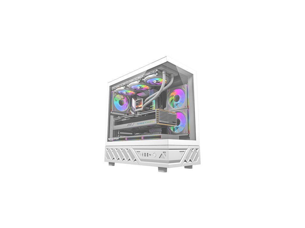 Skříň je vybavena dvěma průhlednými panely bez vertikálního profilu, které poskytují široký výhled na komponenty. Tento design umožňuje zajímavé vizuální efekty – můžete například předvést RGB ventilátory nebo vodní chlazení s displejem. Dejte svému počítači jedinečný charakter!