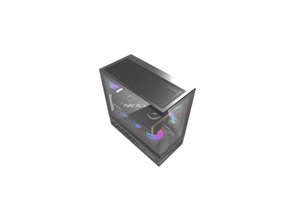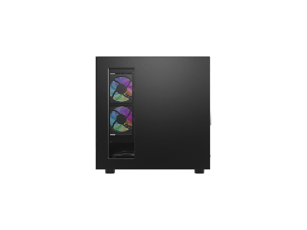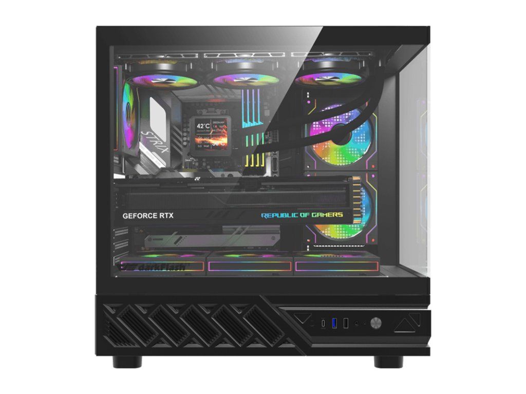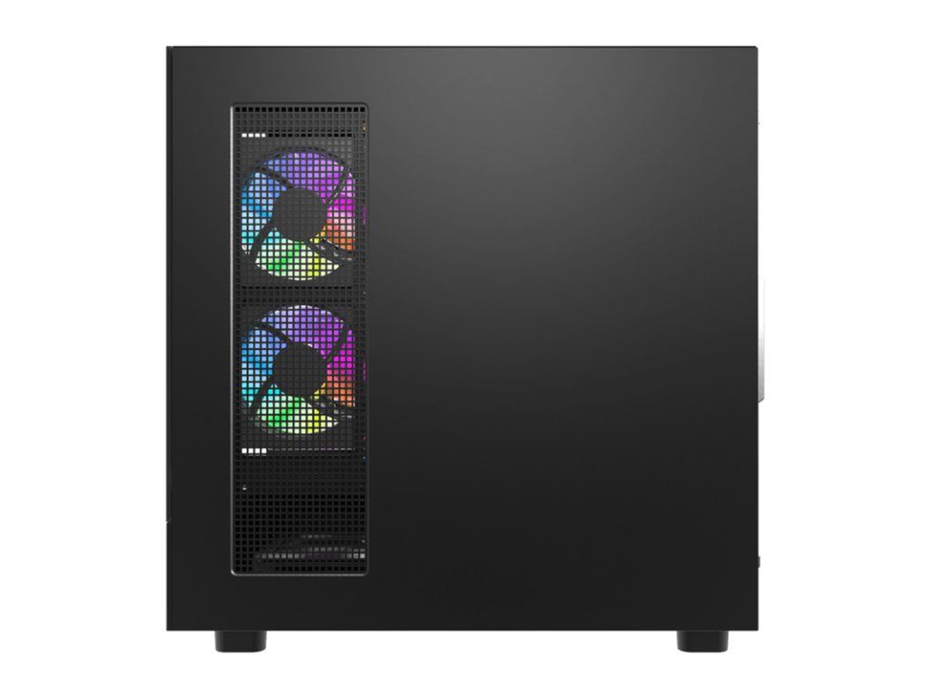 Skříň je vybavena dvěma průhlednými panely bez vertikálního profilu, které poskytují široký výhled na komponenty. Tento design umožňuje zajímavé vizuální efekty – můžete například předvést RGB ventilátory nebo vodní chlazení s displejem. Dejte svému počítači jedinečný charakter!