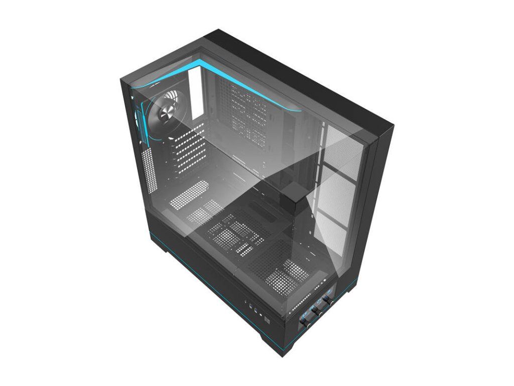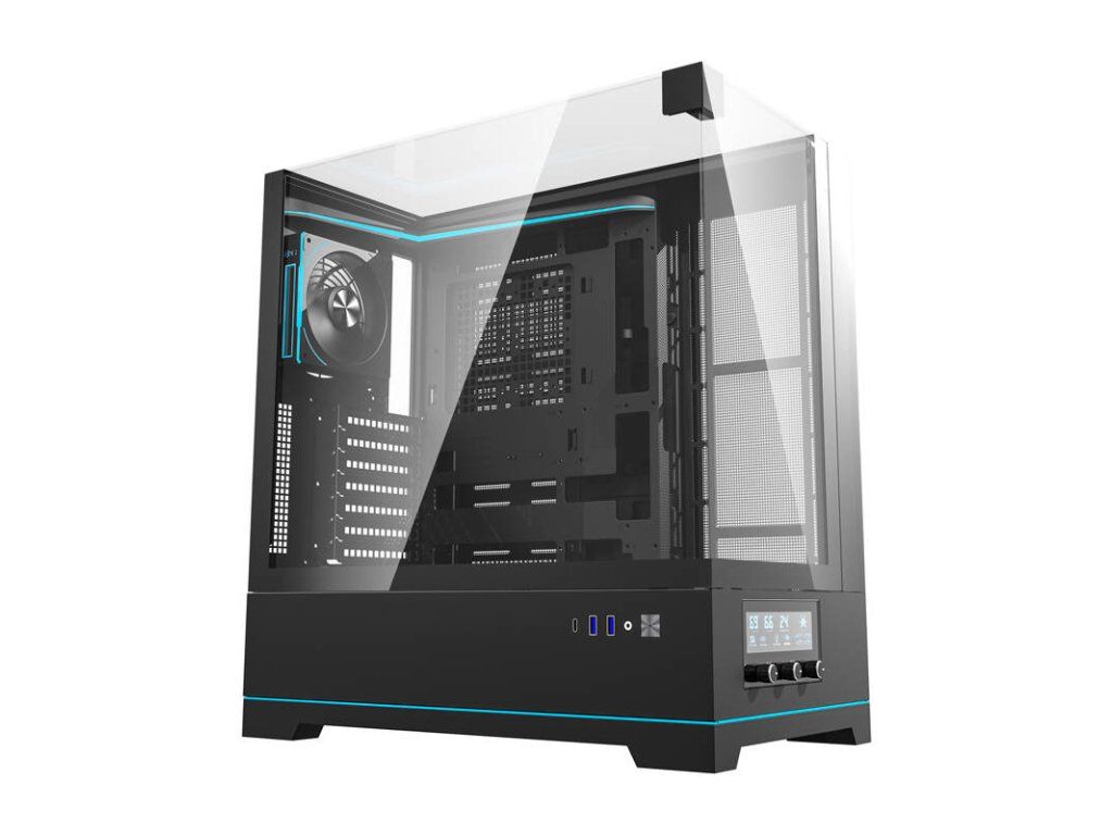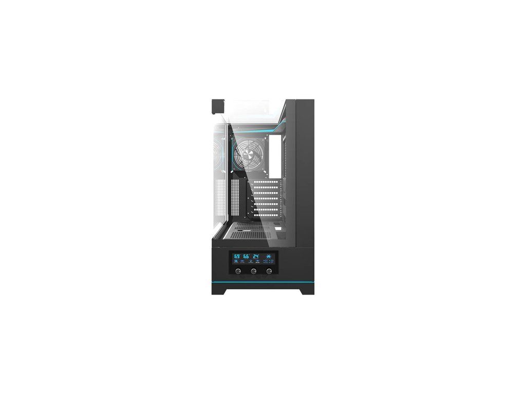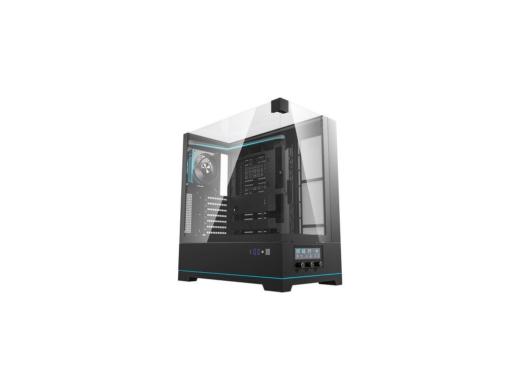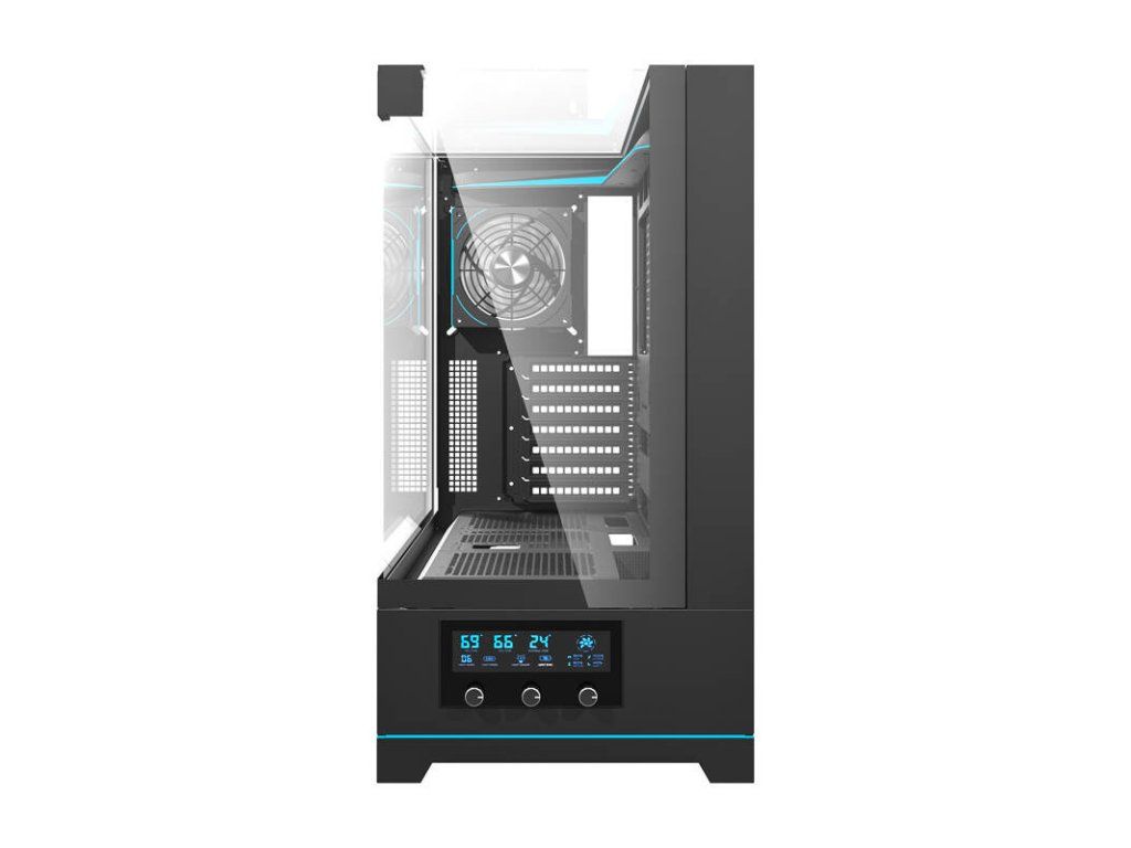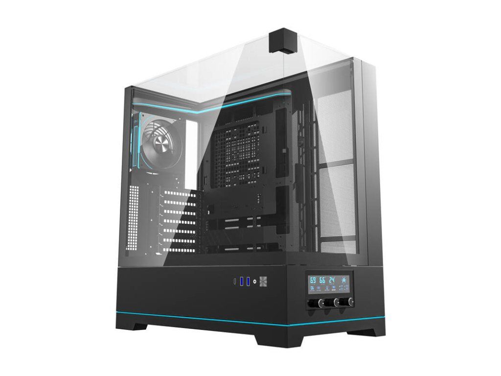 Skříň DY450 PRO je vybavena digitálním systémem řízení teploty, který monitoruje teplotu CPU, GPU a vnitřku skříně. Uživatel tak má plnou kontrolu nad výkonem chlazení. Intuitivní ovládací panel na přední straně umožňuje pohodlně nastavit rychlost ventilátoru, což je užitečné zejména při intenzivní práci nebo dlouhých herních seancích.