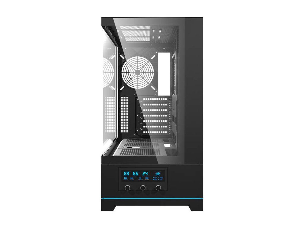 Darkflash DY451 nabízí pohodlné a intuitivní ovládání z předního panelu. Uživatelé zde najdou tlačítka pro zapnutí a restartování a také porty: 2 x USB 3.0, USB-C a audio vstup. Uživatelé tak mohou rychle připojit externí zařízení a spravovat systém chlazení.