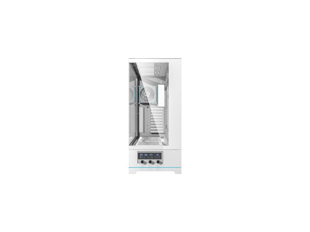 Skříň DY451L PRO je vybavena digitálním systémem řízení teploty se čtyřúrovňovou regulací otáček ventilátorů, který umožňuje nastavit chlazení podle vašich aktuálních potřeb. Na displeji na předním panelu se zobrazují teploty CPU, GPU a vnitřku skříně, což vám dává plnou kontrolu nad chlazením systému.