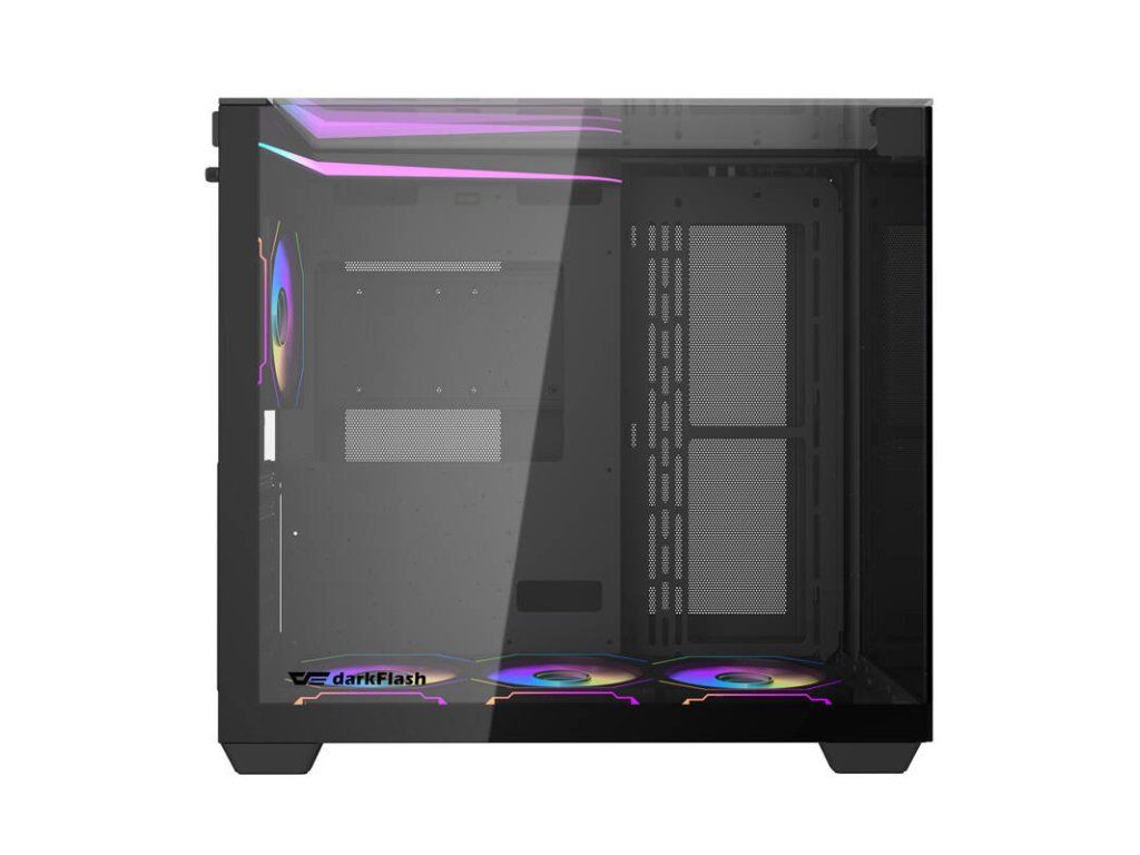Darkflash TH285 je 4ventilátorová ATX skříň, která nabízí solidní základnu pro stavbu výkonných počítačů. Její rozměry jsou 426 mm x 285 mm x 403 mm, což umožňuje volně umístit i velké komponenty. Je vyrobena z odolné 0,7 mm silné oceli SPCC, která zajišťuje odolnost proti poškození.