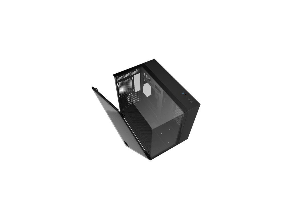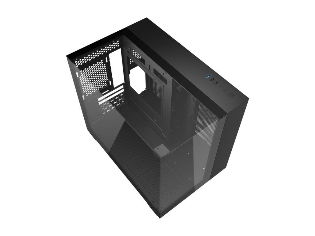 Skříň se vyznačuje až třemi průhlednými panely z tvrzeného skla, které vám umožní snadno si prohlédnout každý detail vaší sestavy. Průhledný design nejen zvyšuje estetiku vašich komponent, ale také vám umožní snadno zkontrolovat stav vašich komponent a účinnost chlazení. Boční panel se šrouby na palec usnadňuje rychlý přístup do vnitřku skříně. Od této chvíle bude váš pracovní prostor působit futuristickým dojmem.