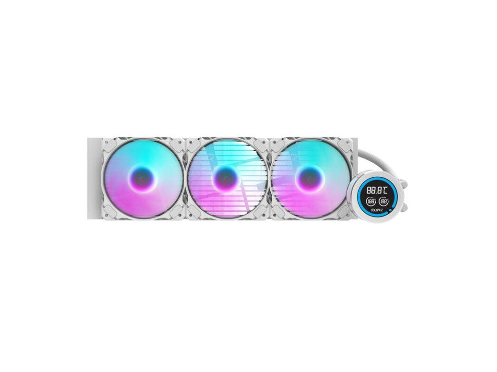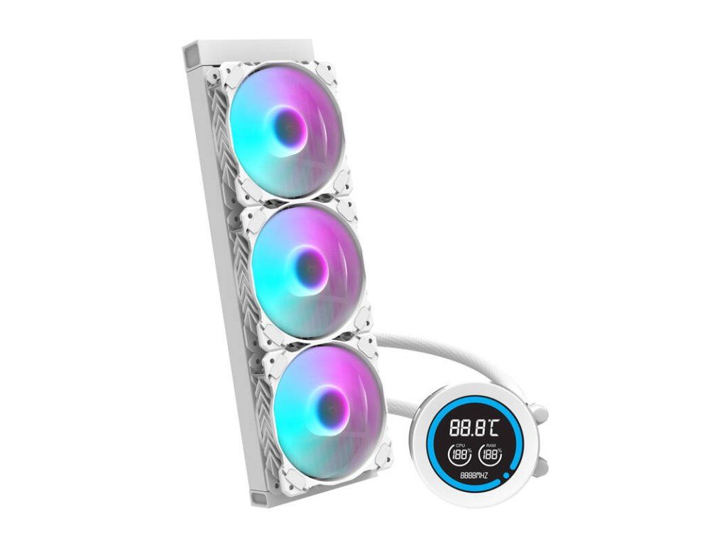 Darkflash DN-D360 je výkonný 360mm vodní chladič, který zajišťuje stabilní provoz procesoru při nízkých teplotách. Je vybaven měděným vodním blokem a hliníkovým chladičem, který účinně odvádí teplo, což je nezbytné při vysokém zatížení systému. Tři 120mm ventilátory s hydraulickými ložisky, PWM regulací a ARGB podsvícením zaručují optimální proudění vzduchu a tichý provoz. Displej LCD umožňuje sledovat teploty CPU a RAM, zatímco trubice IIR+EPDM zajišťují vysokou teplotní odolnost a trvanlivost konstrukce.