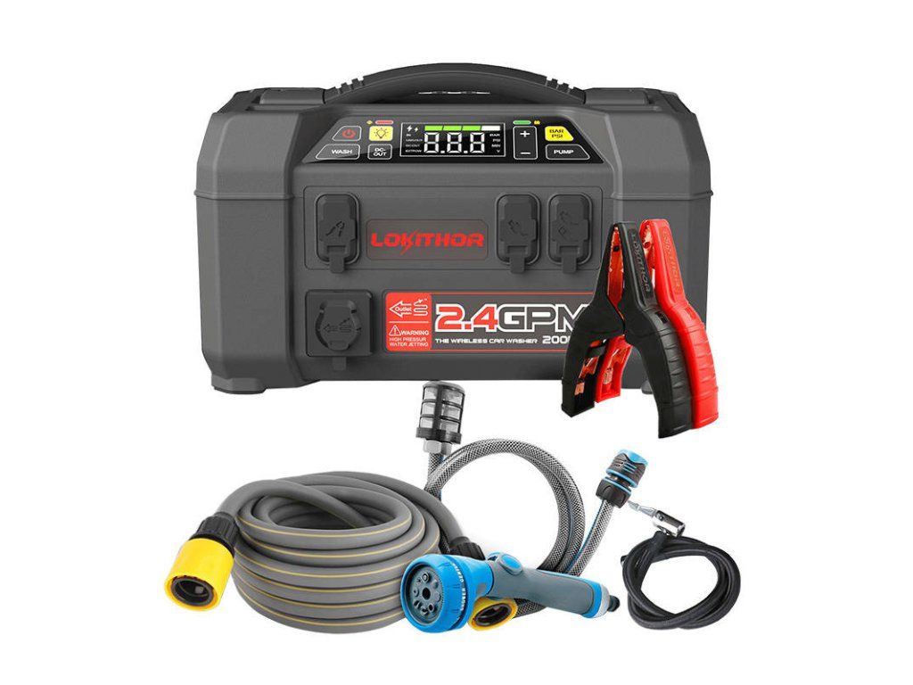 Lokithor AW401 je univerzální zařízení 5 v 1, které se bude hodit téměř v každém autě. Skvěle poslouží jako startér se špičkovým proudem 2500 A a může sloužit i jako powerbanka - podporuje rychlé nabíjení 60 W. Úspěšně jej využijete také k huštění pneumatik - nabízí tlak až 150psi. Výrobek poslouží také jako výkonná tlaková myčka a svítilna se svítivostí až 500 lm. Už nemusíte kupovat 5 různých zařízení - s AW401 máte vše, co byste mohli potřebovat, v jednom zařízení!