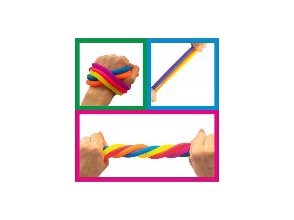 Elastické senzorické gumičky se snadno natahují, netrhají se a vracejí se do původního tvaru. Vyrobeny z termoplastické pryže, bezpečného hypoalergenního materiálu, s lehkou ovocnou vůní.