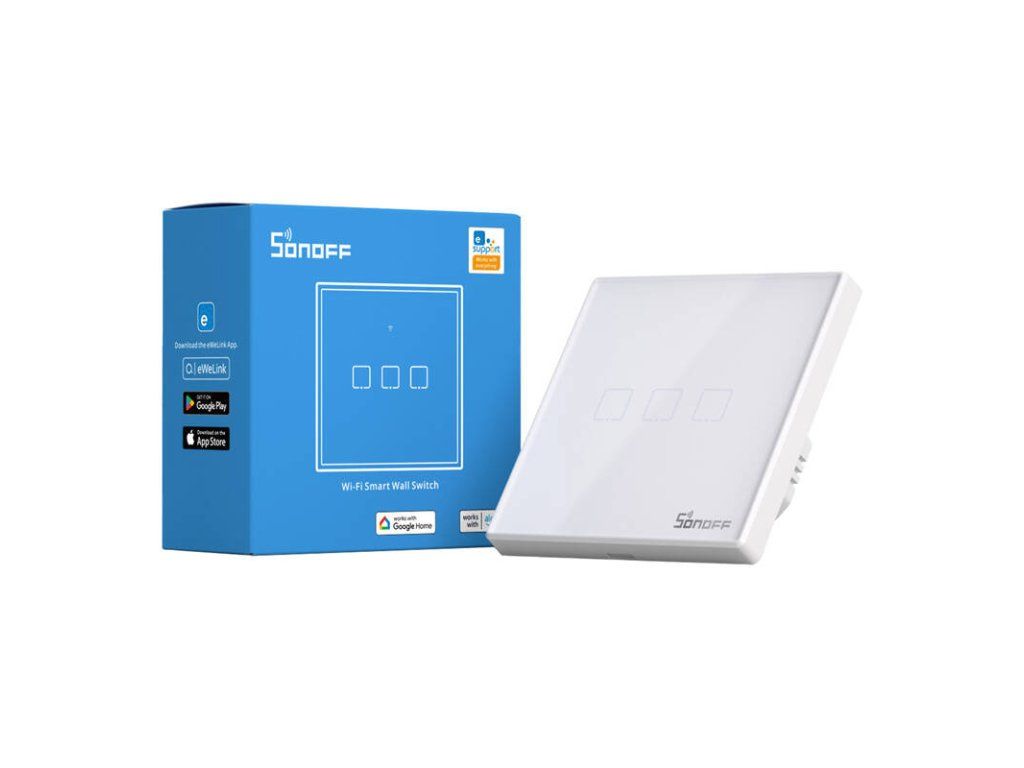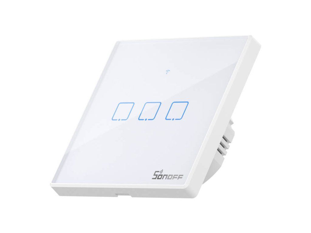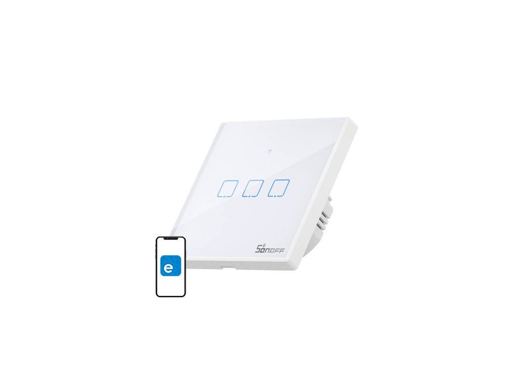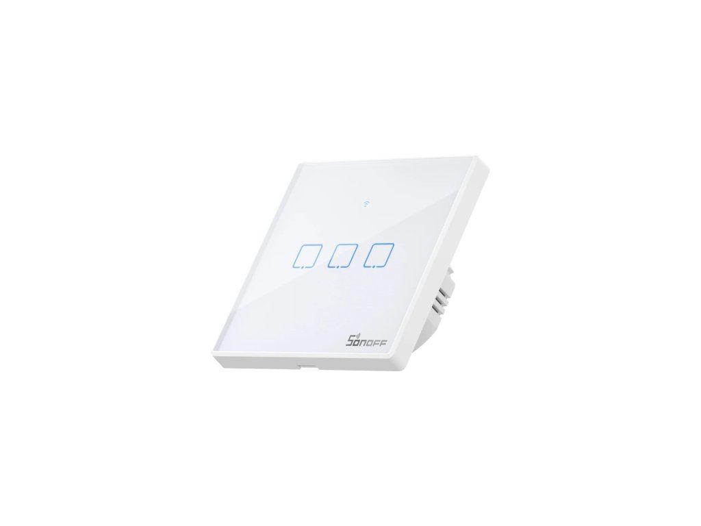Dotykový spínač WiFi + RF 433 Sonoff T2 EU TX (3 kanály) Sonoff TX je dotykový a chytrý spínač světla. Lze jej ovládat pomocí aplikace přes WiFi nebo klasicky, dotykem. Můžete si tak doma rozsvítit světlo ve vámi zvolené místnosti, ať jste kdekoli. Je vyroben z vysoce kvalitních materiálů, jako je žáruvzdorné ABS a tvrzené sklo, zajišťuje bezpečnost a dokonale zapadne do každé místnosti. Jemné podsvícení vypínače, decentně zvýrazňuje jeho design a zviditelňuje ho v noci. Ovládání pro všechny členy domácnosti Pomocí aplikace můžete snadno sdílet možnost ovládání osvětlení s ostatními uživateli. Ovládání Uživatelé mohou připojená zařízení ovládat na dálku prostřednictvím bezplatné aplikace eWeLink dostupné na platformách iOS a Android. Možné je také dotykové ovládání a ovládání na dálku (433 MHz). Díky síťovému připojení probíhá synchronizace stavu zařízení okamžitě, takže aplikace zobrazuje vždy aktuální údaje. Díky tomu si můžeme udržet plnou kontrolu nad nadměrnou spotřebou energie ve vaší domácnosti. Chytré ovládání Můžete si nastavit vlastní časové plány pro automatické zapnutí/vypnutí spotřebičů v určitou dobu nebo po určité době. Mobilní ovládání Díky možnosti ovládat osvětlení prostřednictvím aplikace můžete snadno zapnout nebo vypnout světla ve své domácnosti, když jste pryč. Aplikace se velmi snadno používá a umožňuje vybrat konkrétní vypínač. Už se nemusíte obávat, že by světlo zůstalo zapnuté. Model T2EU3C-TX Napětí 100~240 V AC Maximální proud 1 A (kanál) Maximální výkon LED 100 W (kanál) Barva Bílá WiFi 802.11 b/g/n Šifrování WiFi WPA-PSK/WPA2-PSK Materiál Tvrzené sklo / PC V0 Počet kanálů 3 Rozměry montážního otvoru 86 mm x 86 mm x 35 mm